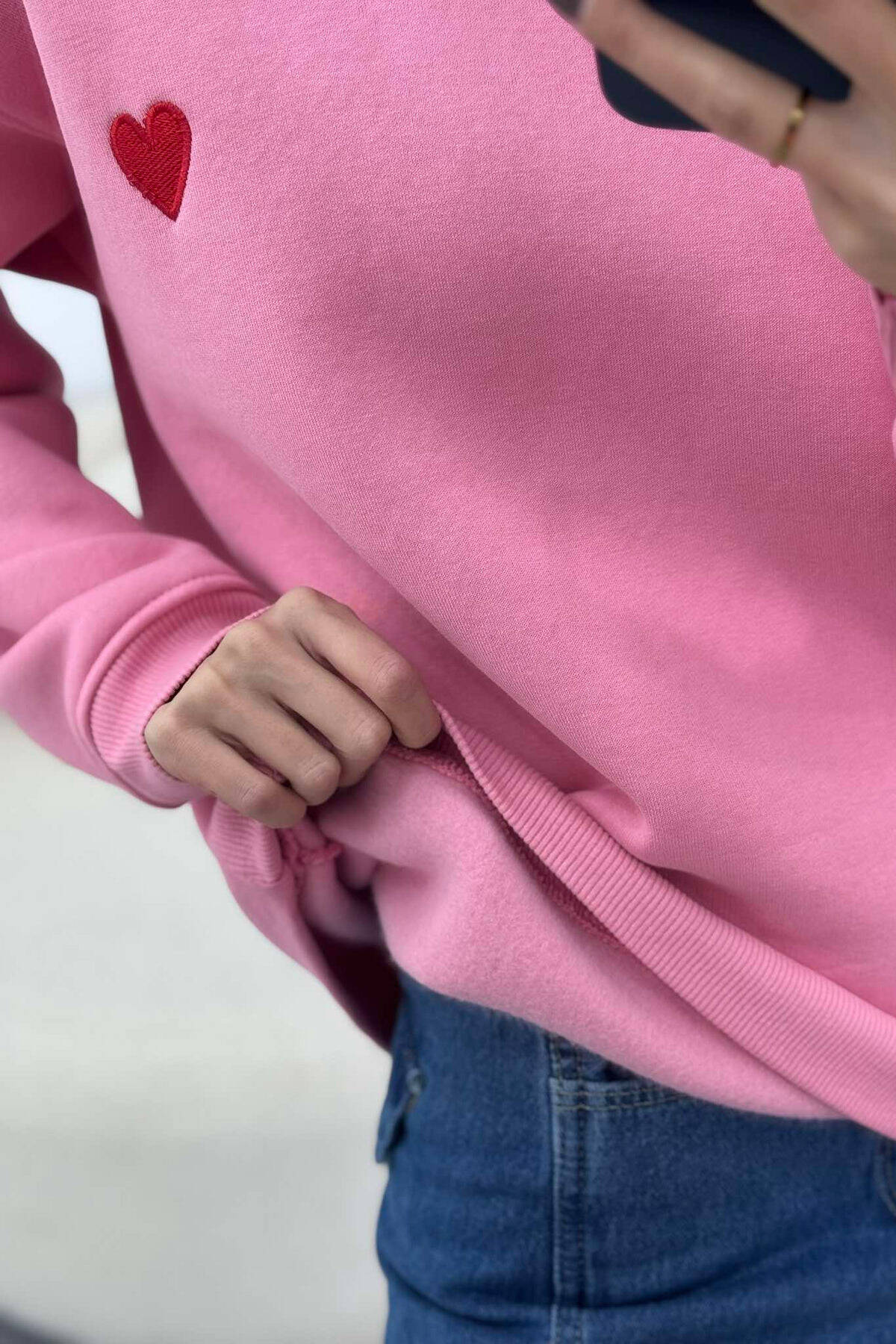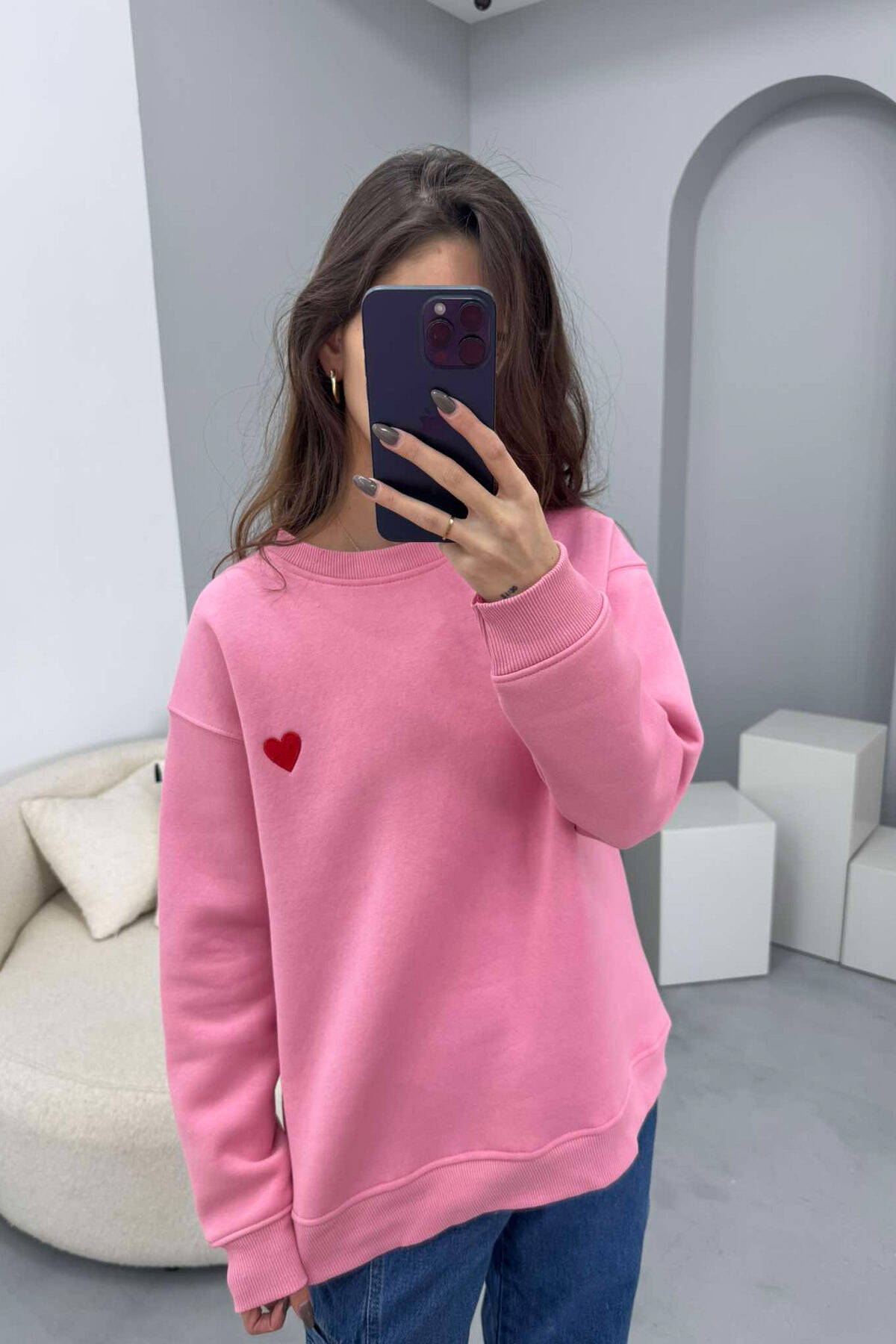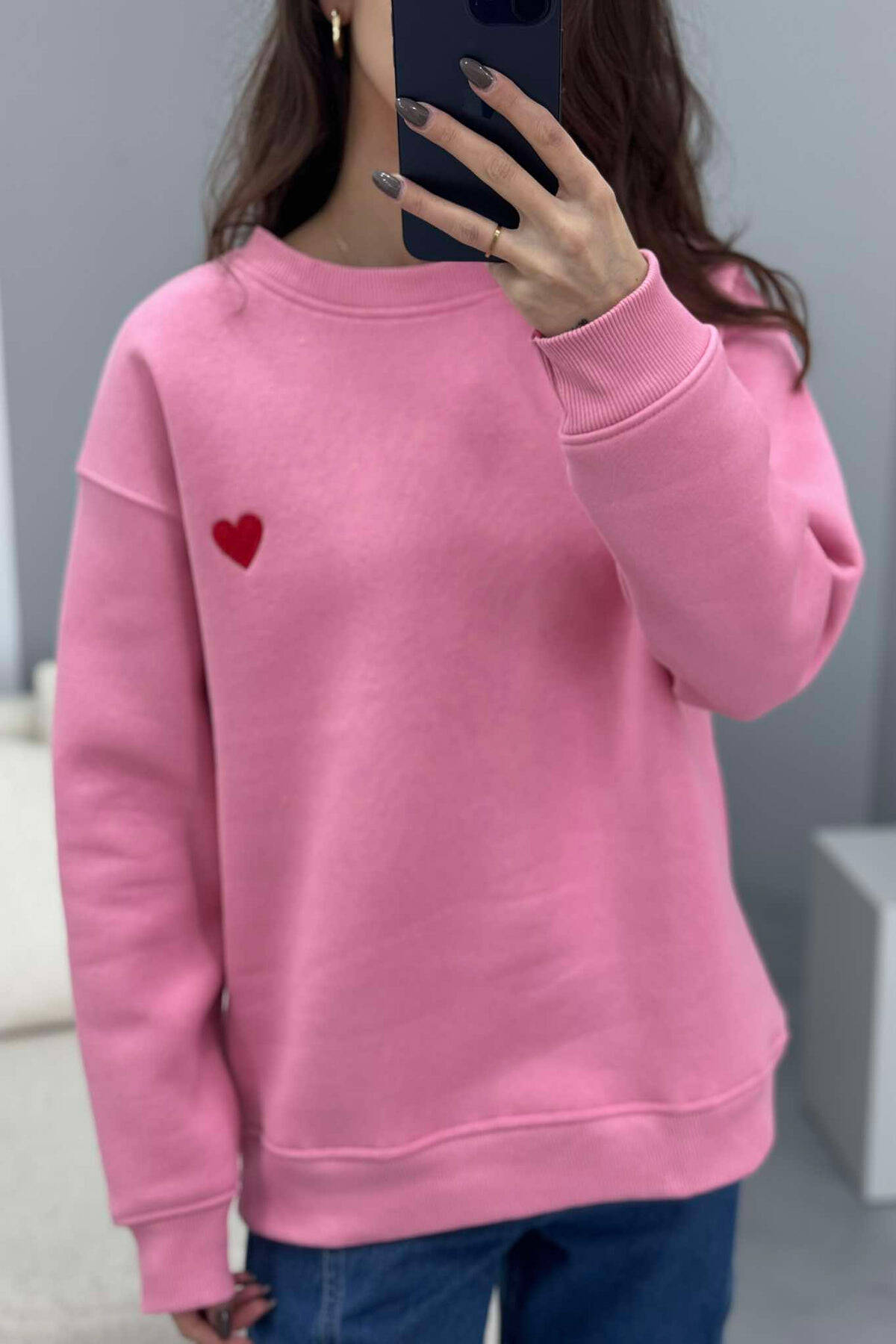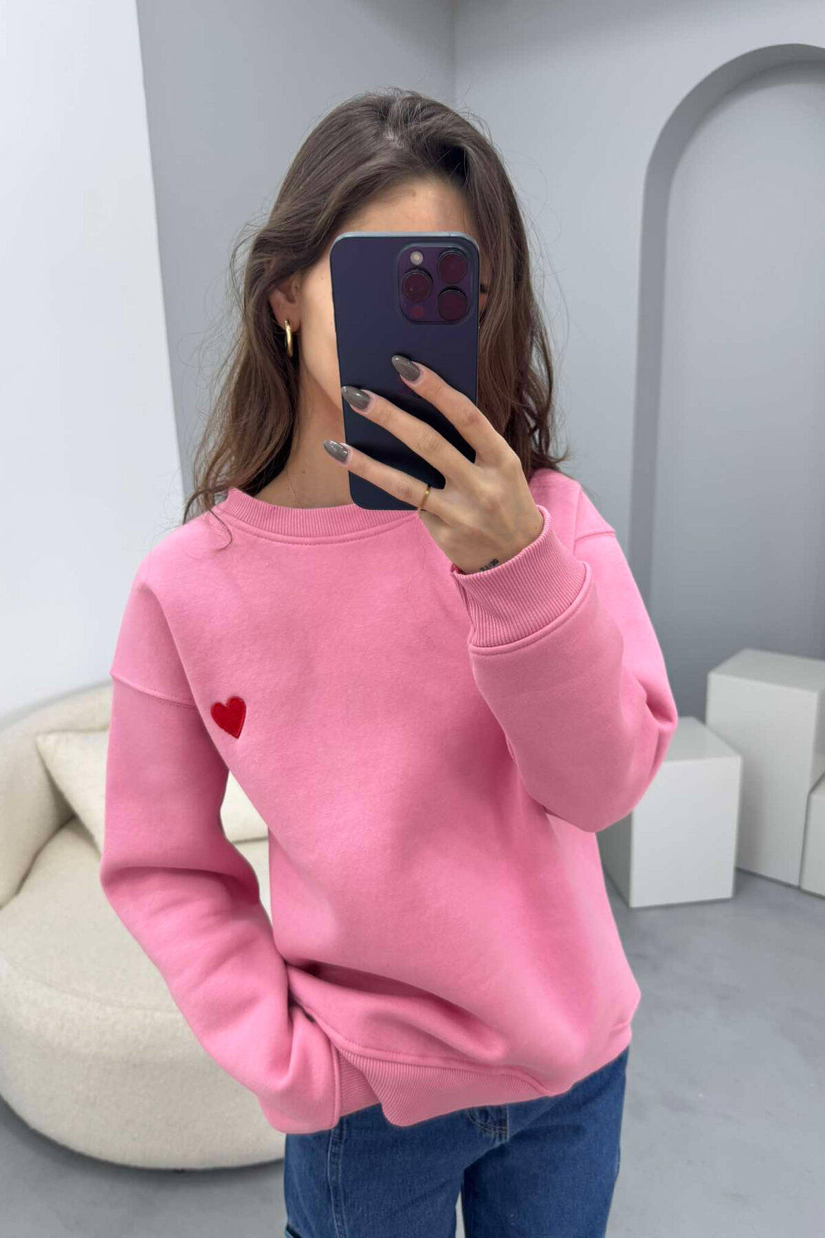 BLUZË ME PUSH ME DETAJIN E ZEMRËS PËR FEMRA NË NGJYRËN ROZË