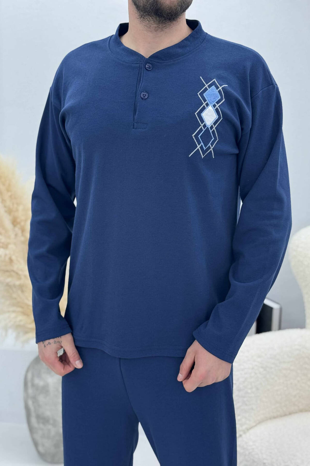 RHOMBUS BUTTONED SWEATSHIRT+SWEATPANTS MEN PYJAMAS DARK BLUE/BEE
