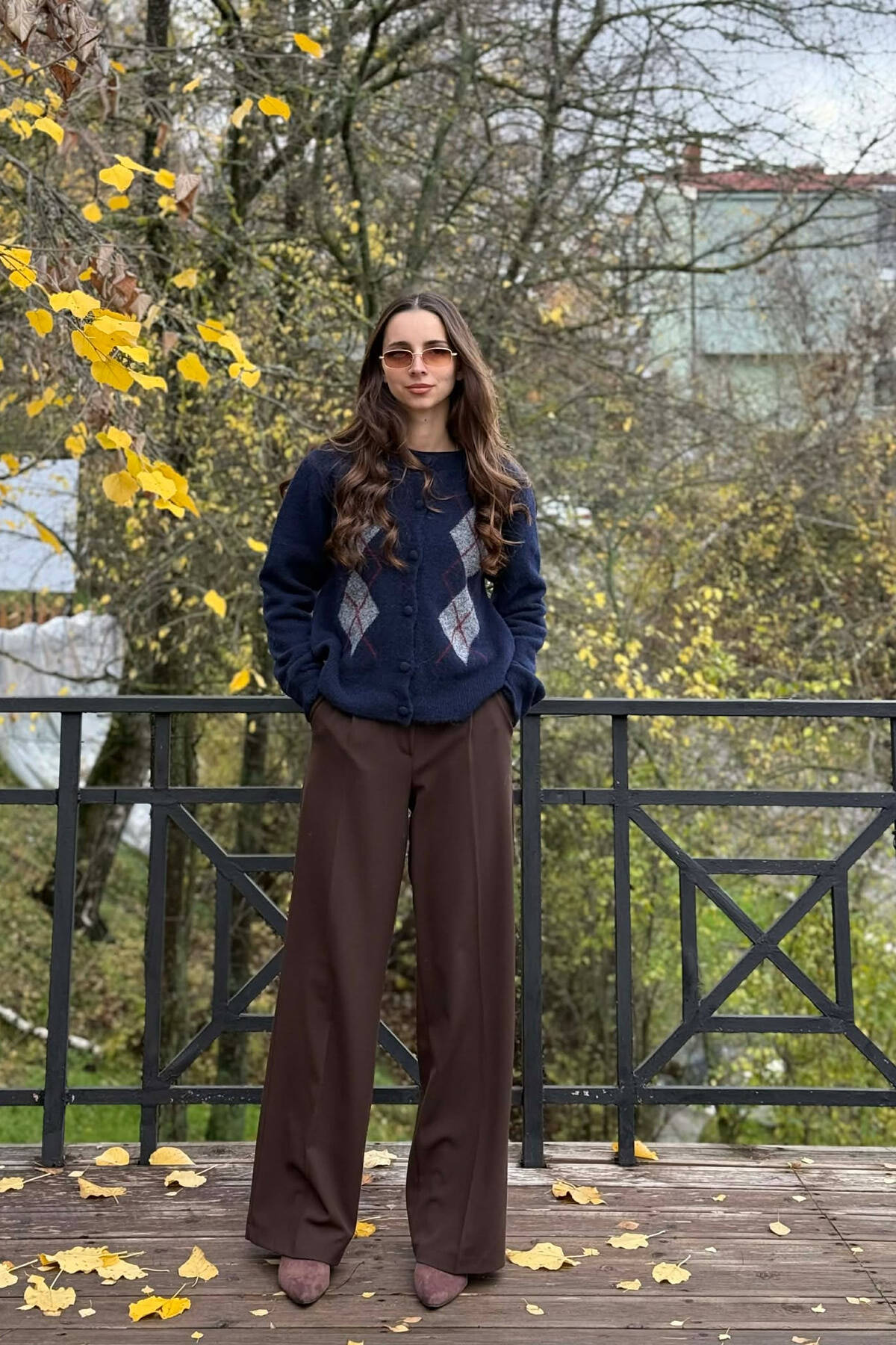 RHOMBUS DESIGN SIMPLE WOMEN CARDIGAN DARK BLUE/BEE