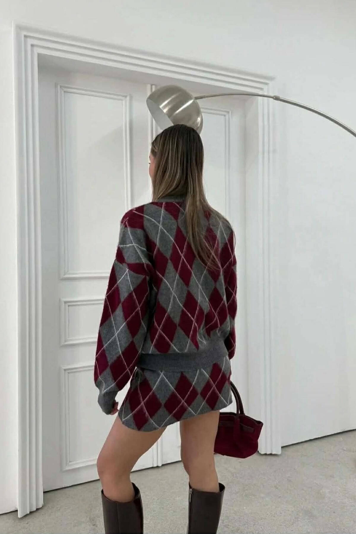 RHOMBUS DESIGN SWEATER+SKIRT WOMEN SET GREY/GRI