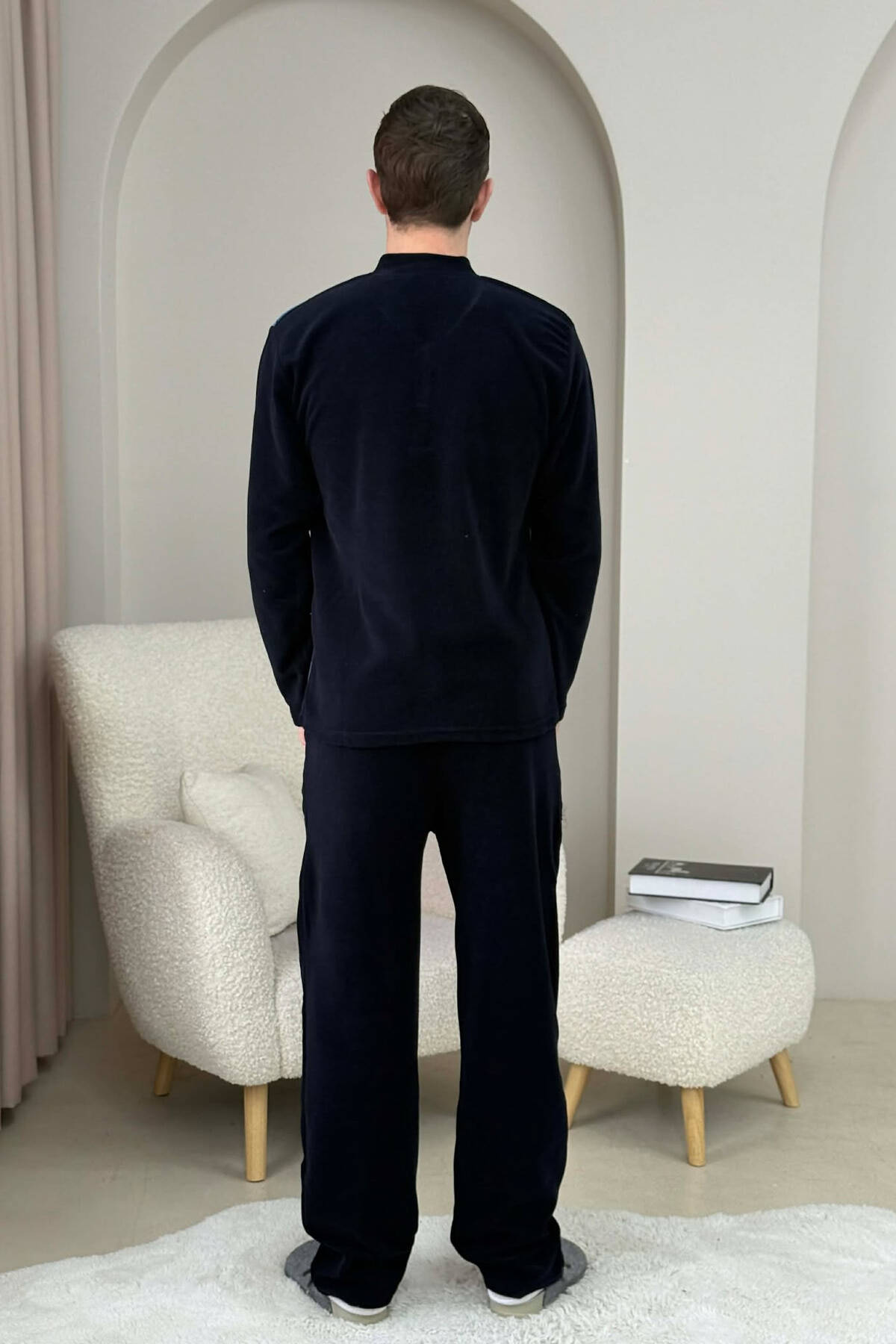 PIZHAME BLUZË ME JAKË TË RRUMBULLAKËT+TUTA PËR MESHKUJ NË NGJYRË BLU