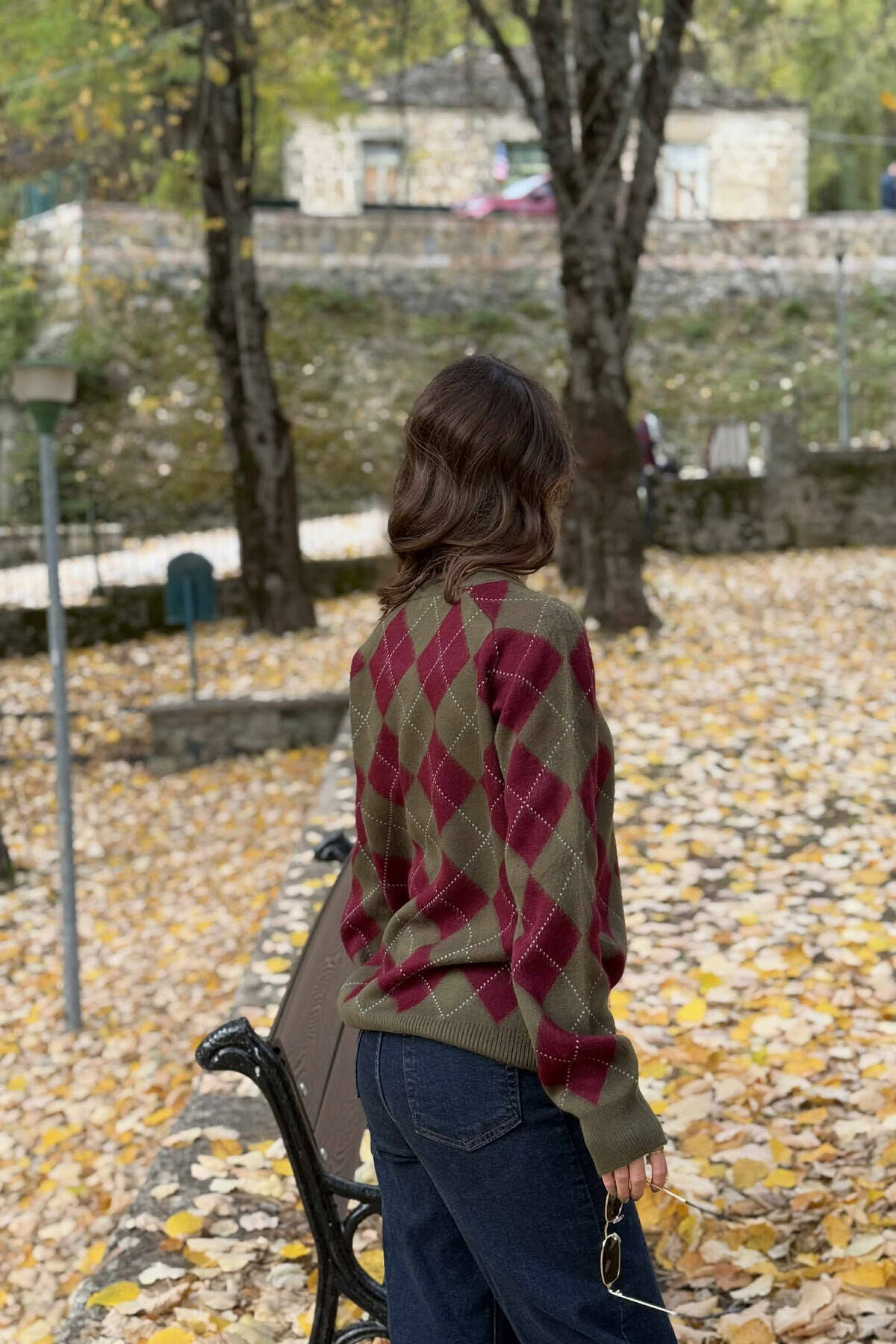 RHOMBUS DESIGN WOMEN SWEATER GREEN-BURGUNDY/JEVI