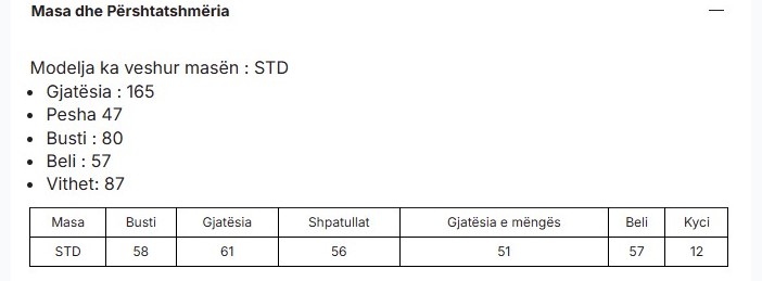 Size chart