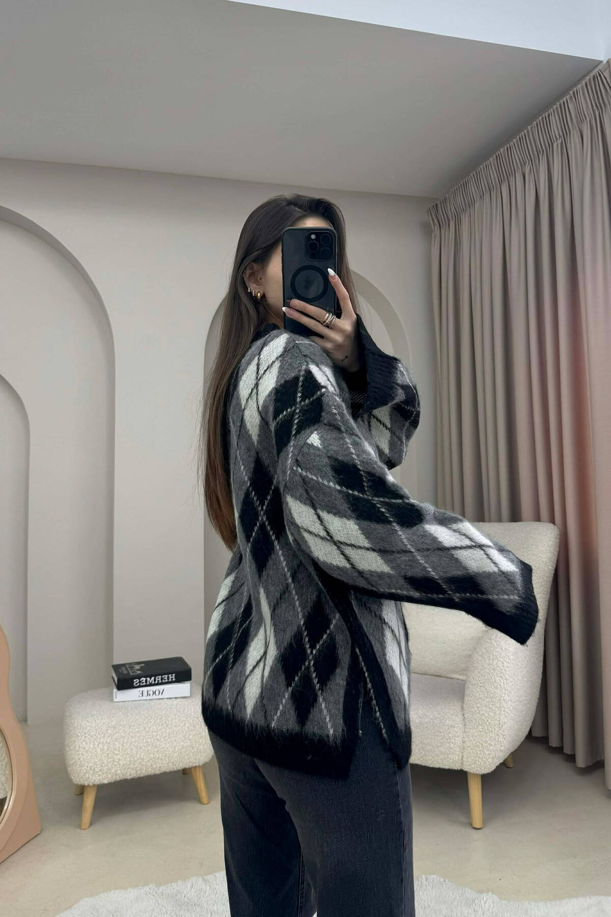 RHOMBUS STRIPE DESIGN WOMAN SWEATER GREY/GRI