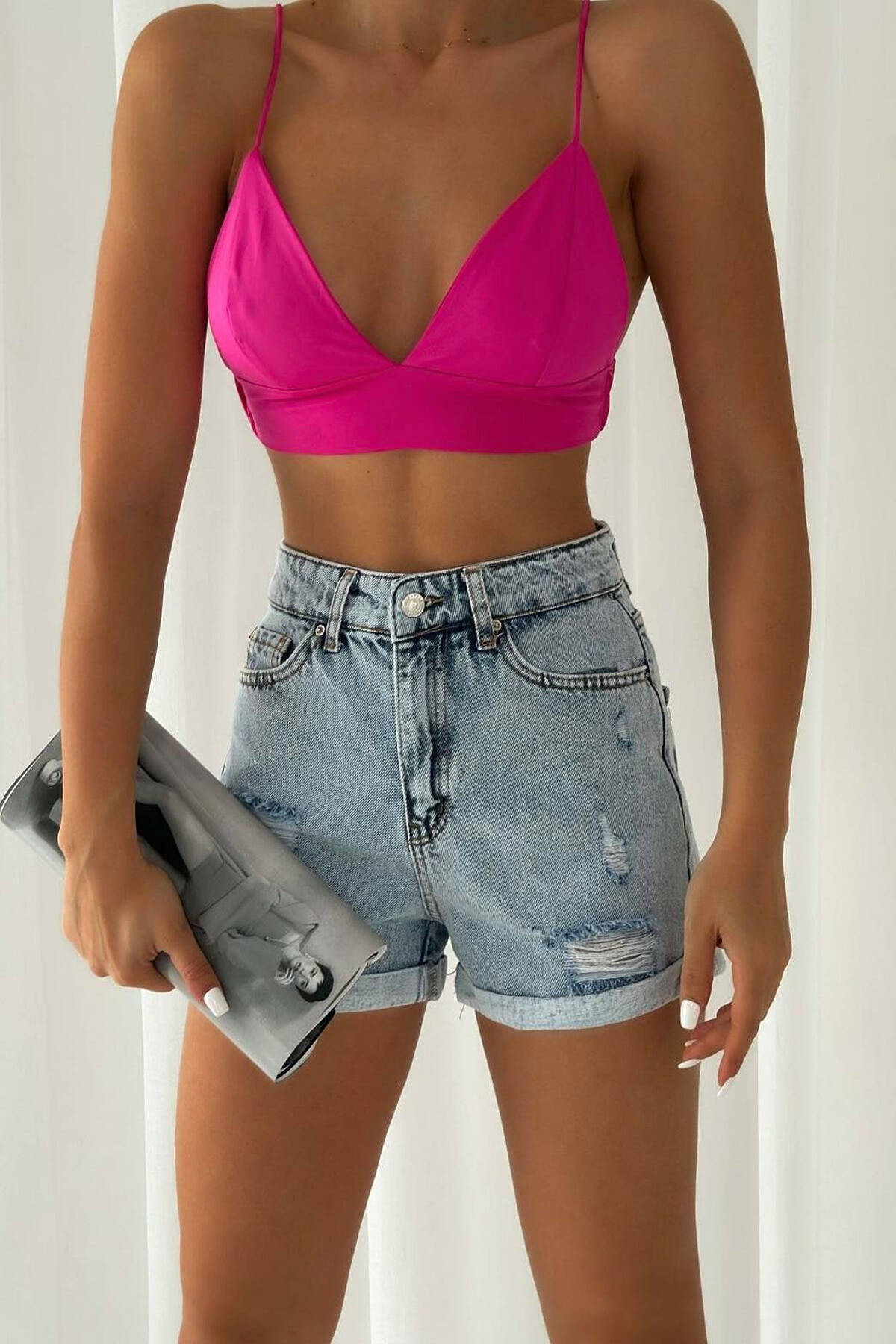 CUT OFF EDGES DENIM WOMEN SHORTS LIGHTBLUE/BZ