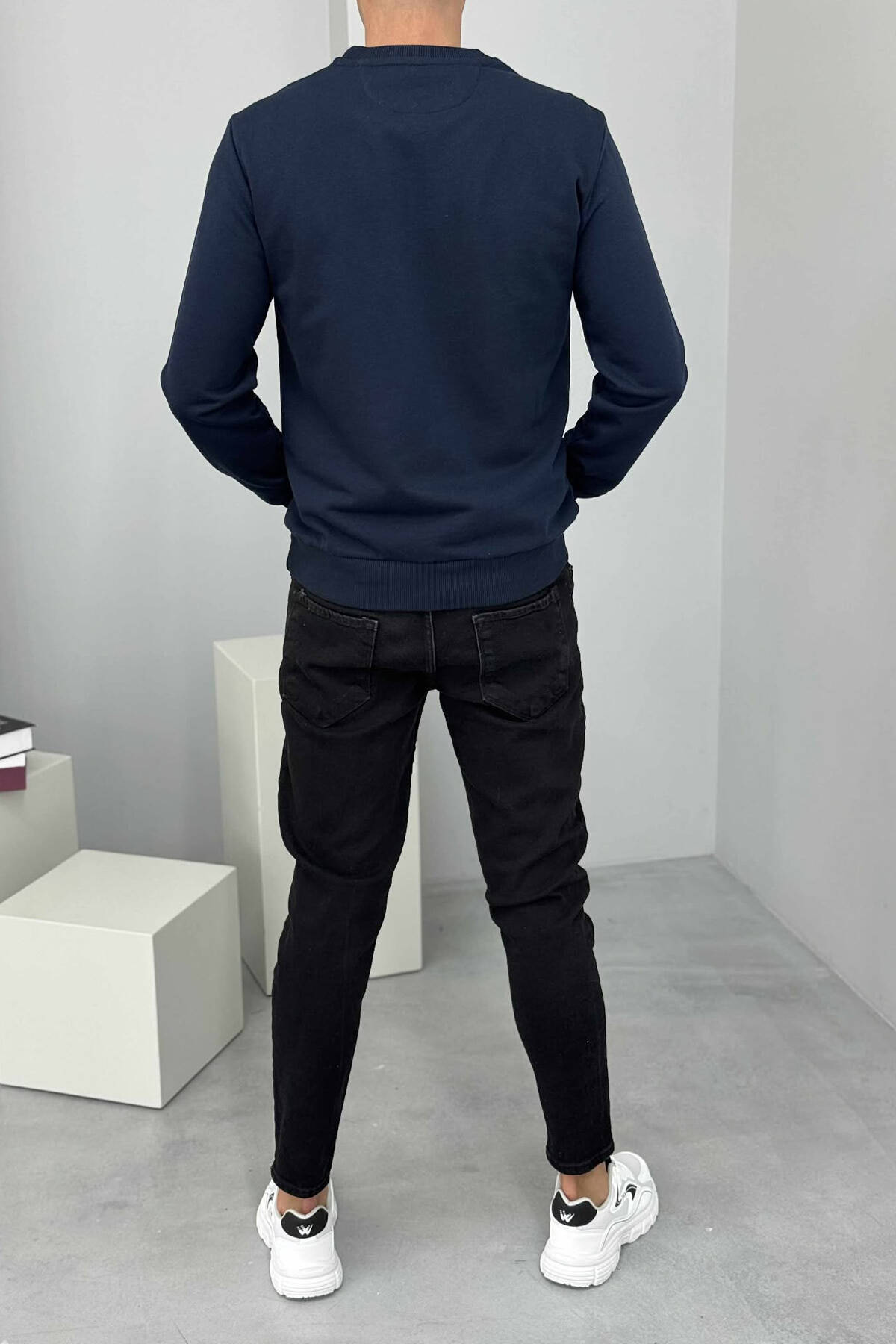 ROUND NECK FRONT DESIGN MEN SWEATSHIRT DARK BLUE/BEE