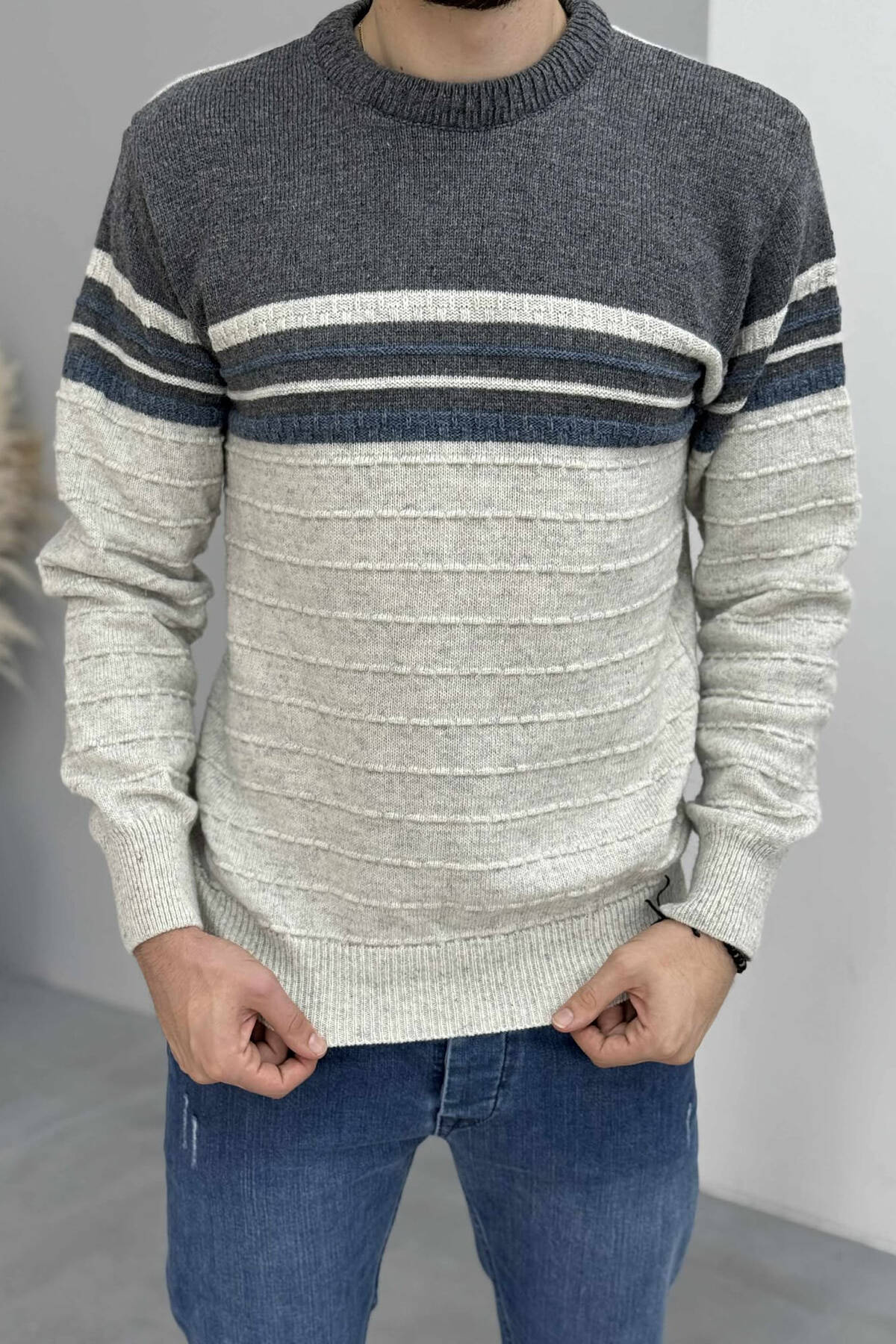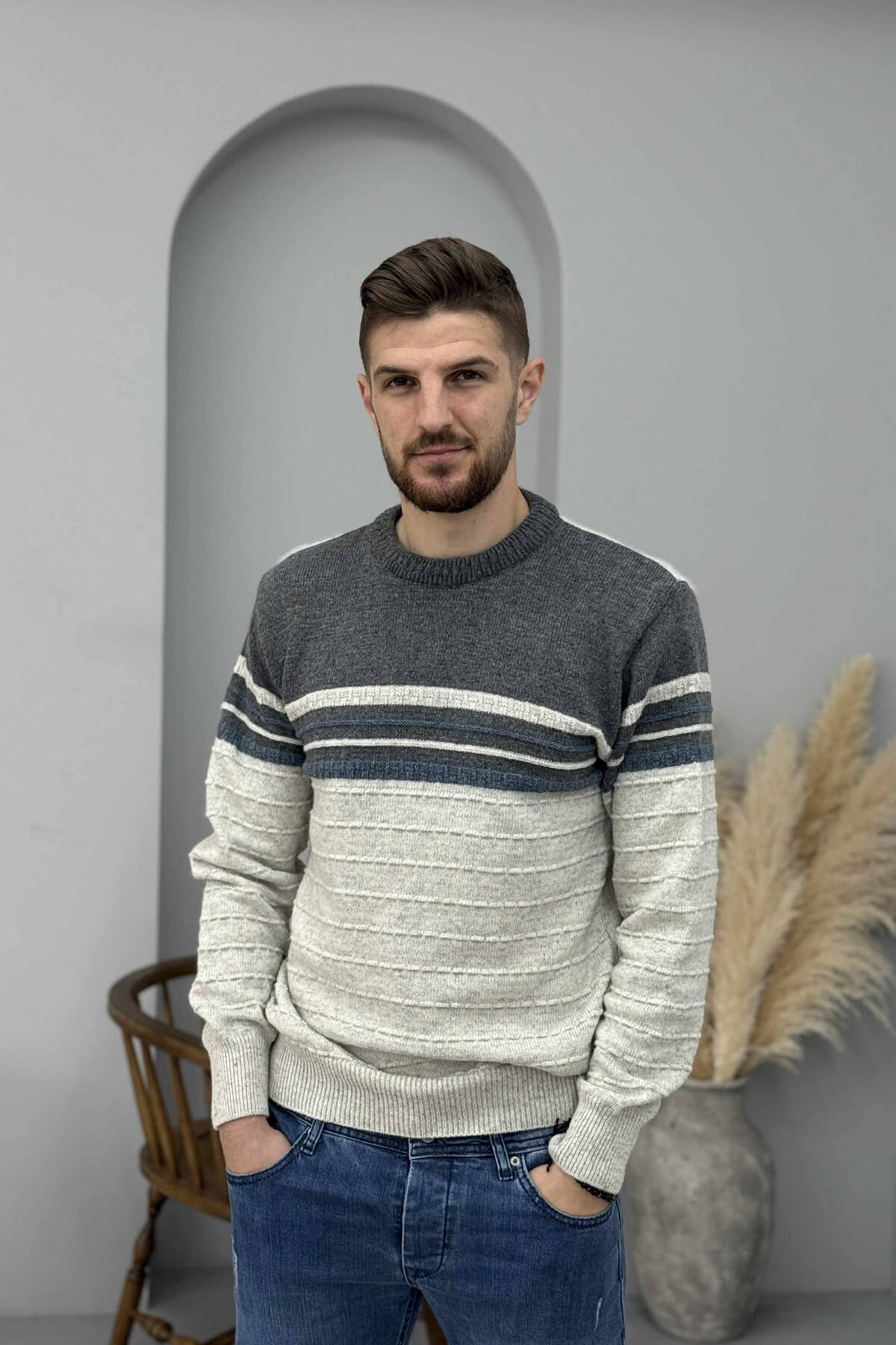 ROUND NECK KNITTED MEN SWEATER LIGHT GREY/GZ
