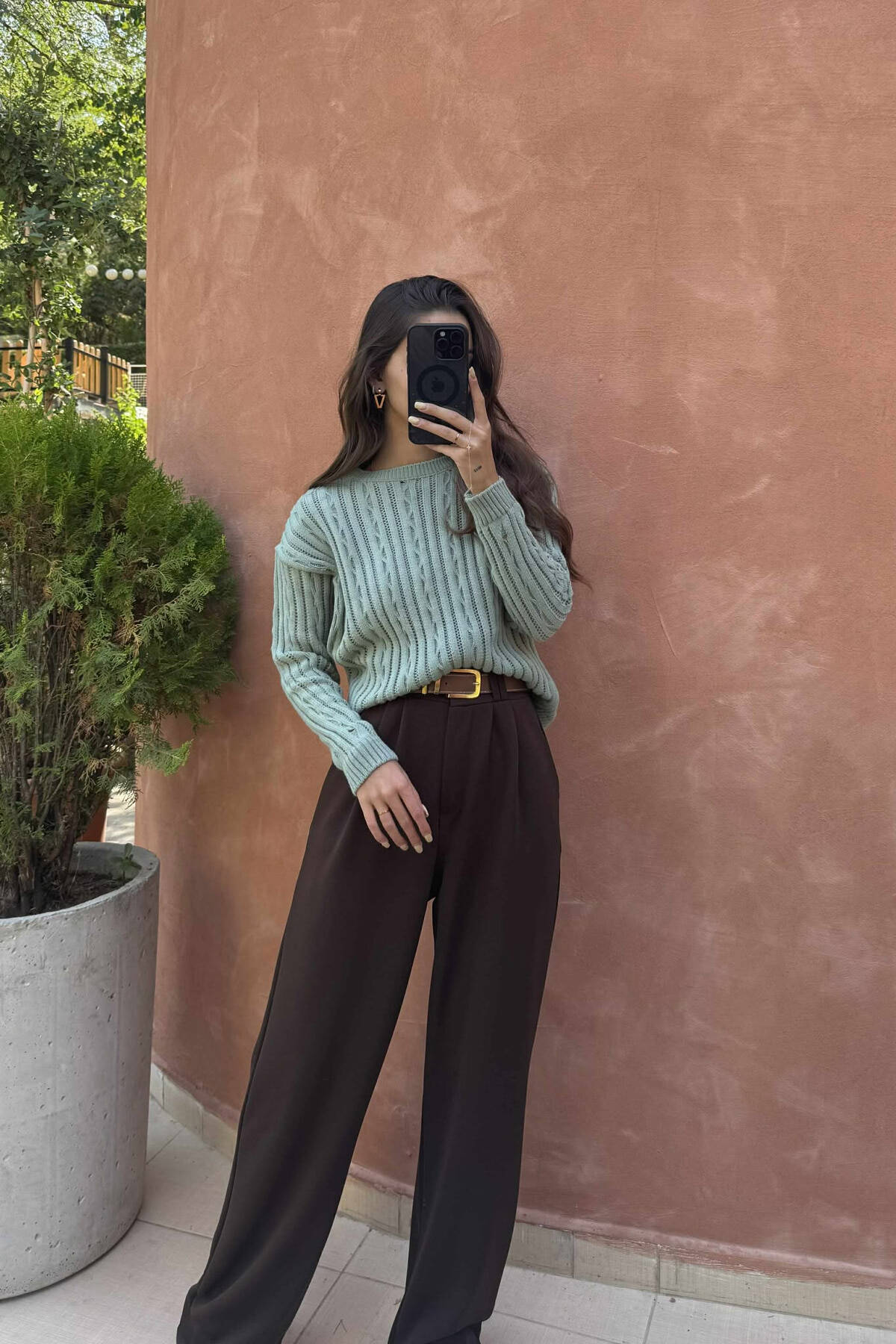 ROUND NECK KNITTED WOMEN SWEATER MINT/MENTE