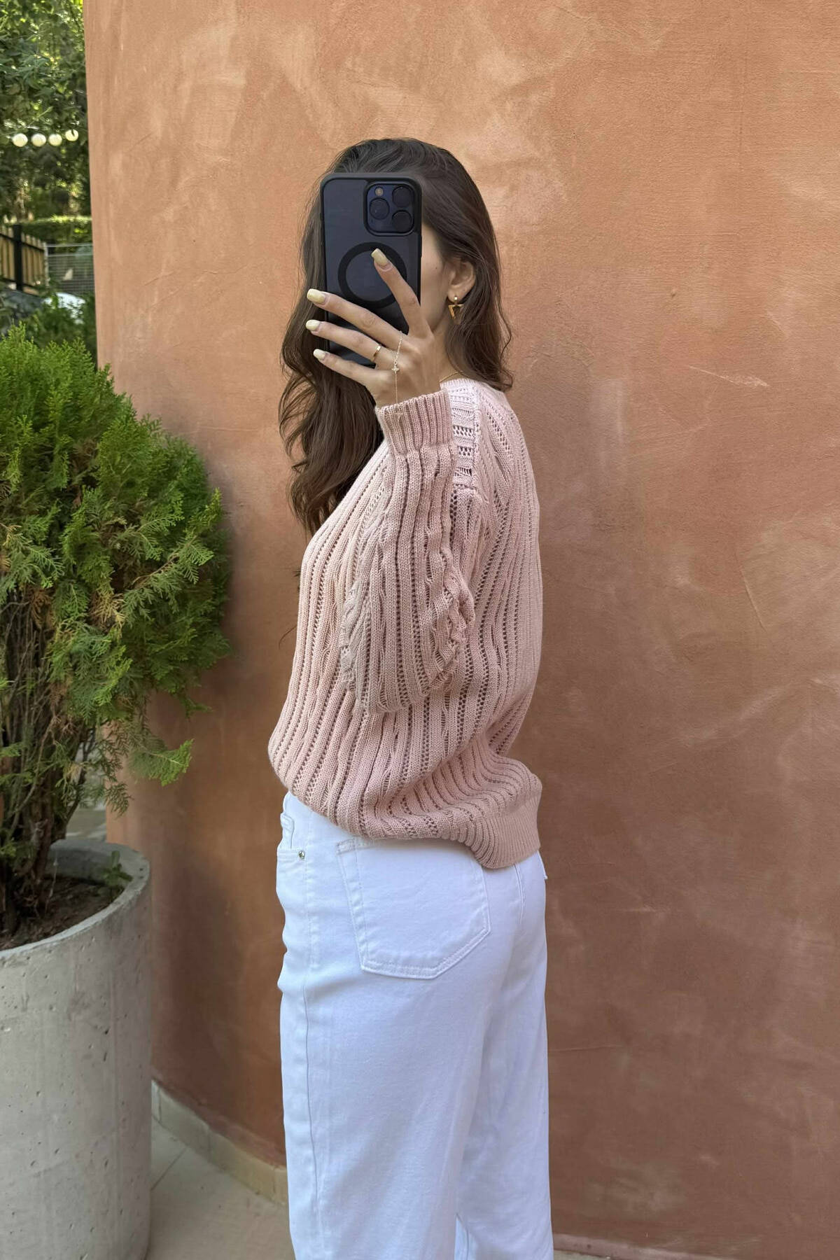 ROUND NECK KNITTED WOMEN SWEATER POWDER/PUDER
