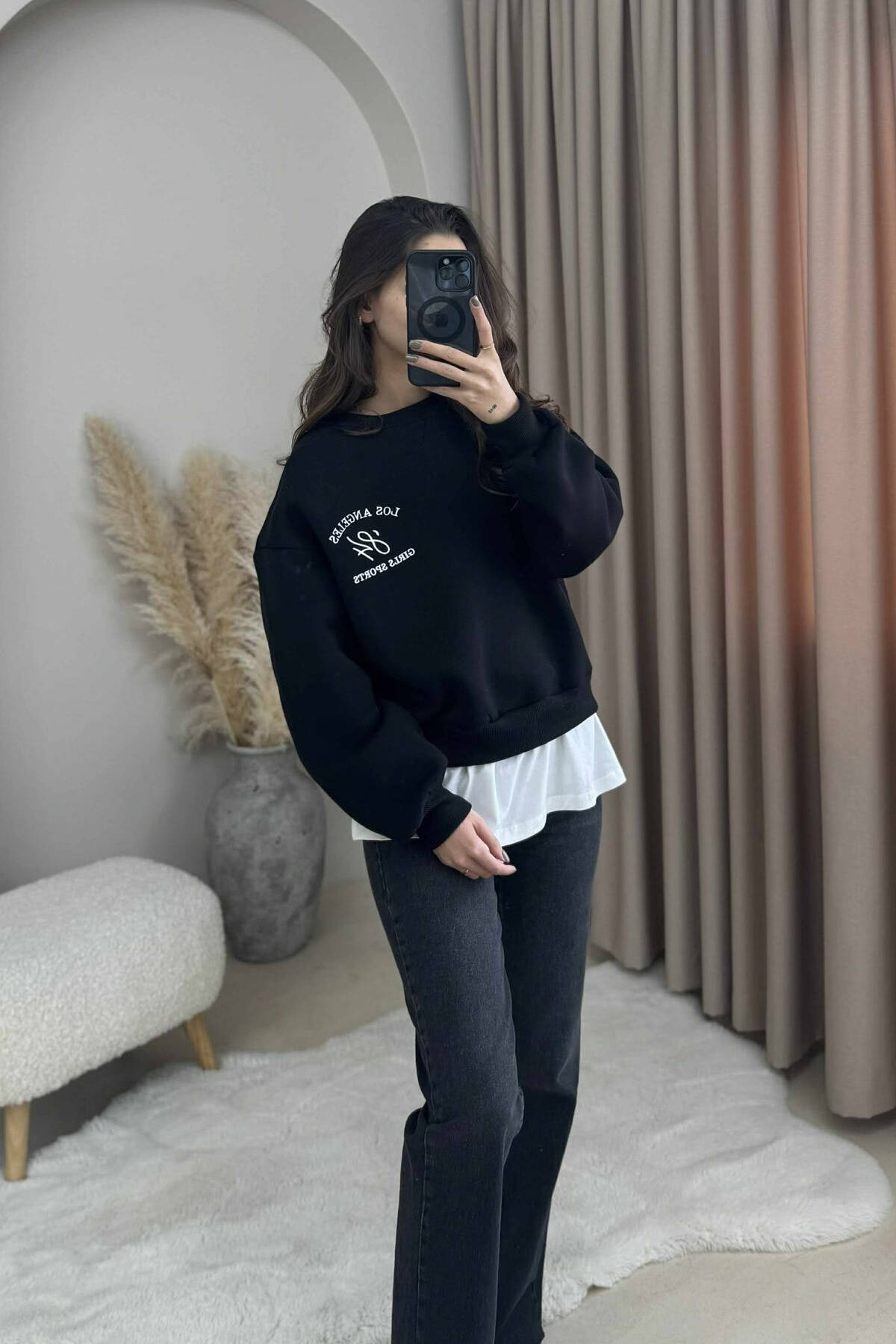 ROUND NECK LA FLUFFY WOMEN SWEATSHIRT BLACK/ E ZEZE