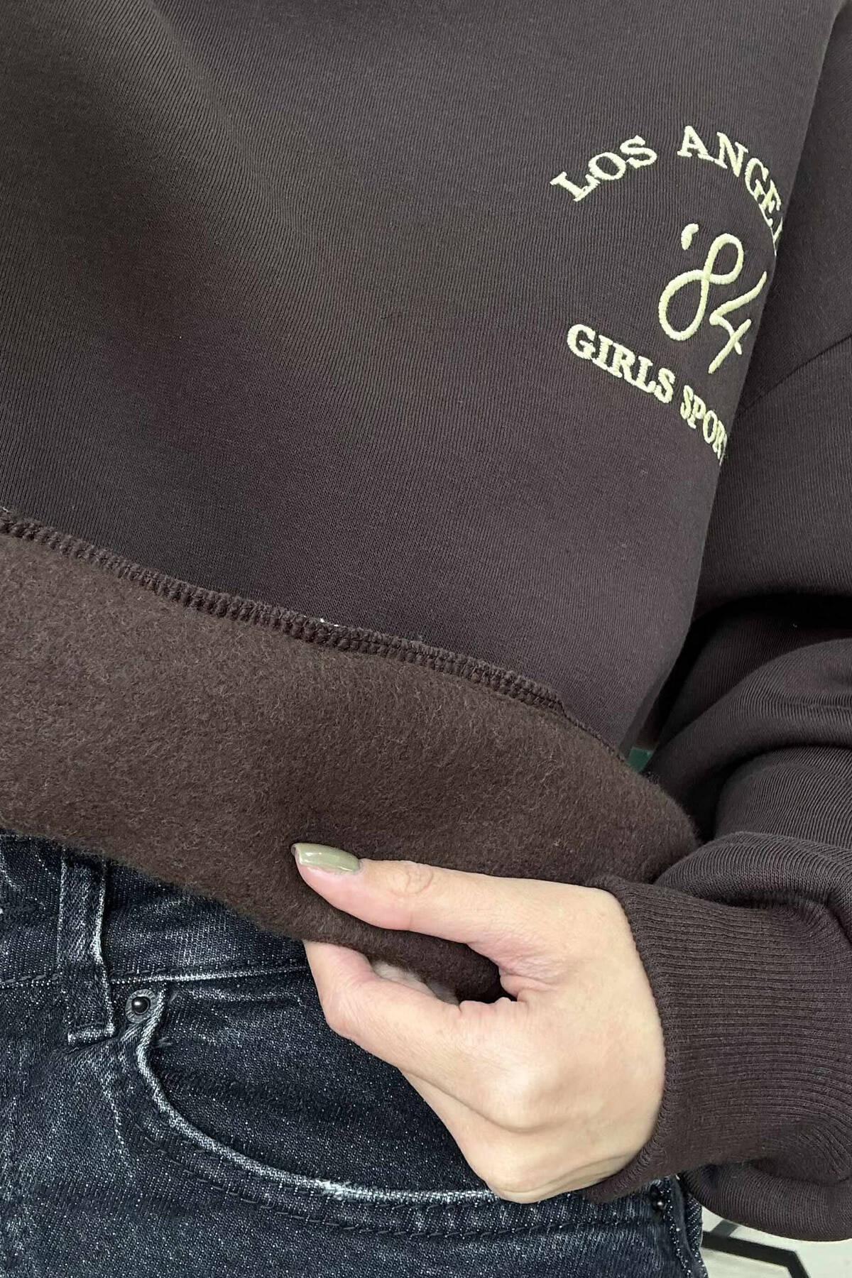 ROUND NECK LA FLUFFY WOMEN SWEATSHIRT DARK BROWN/KAE