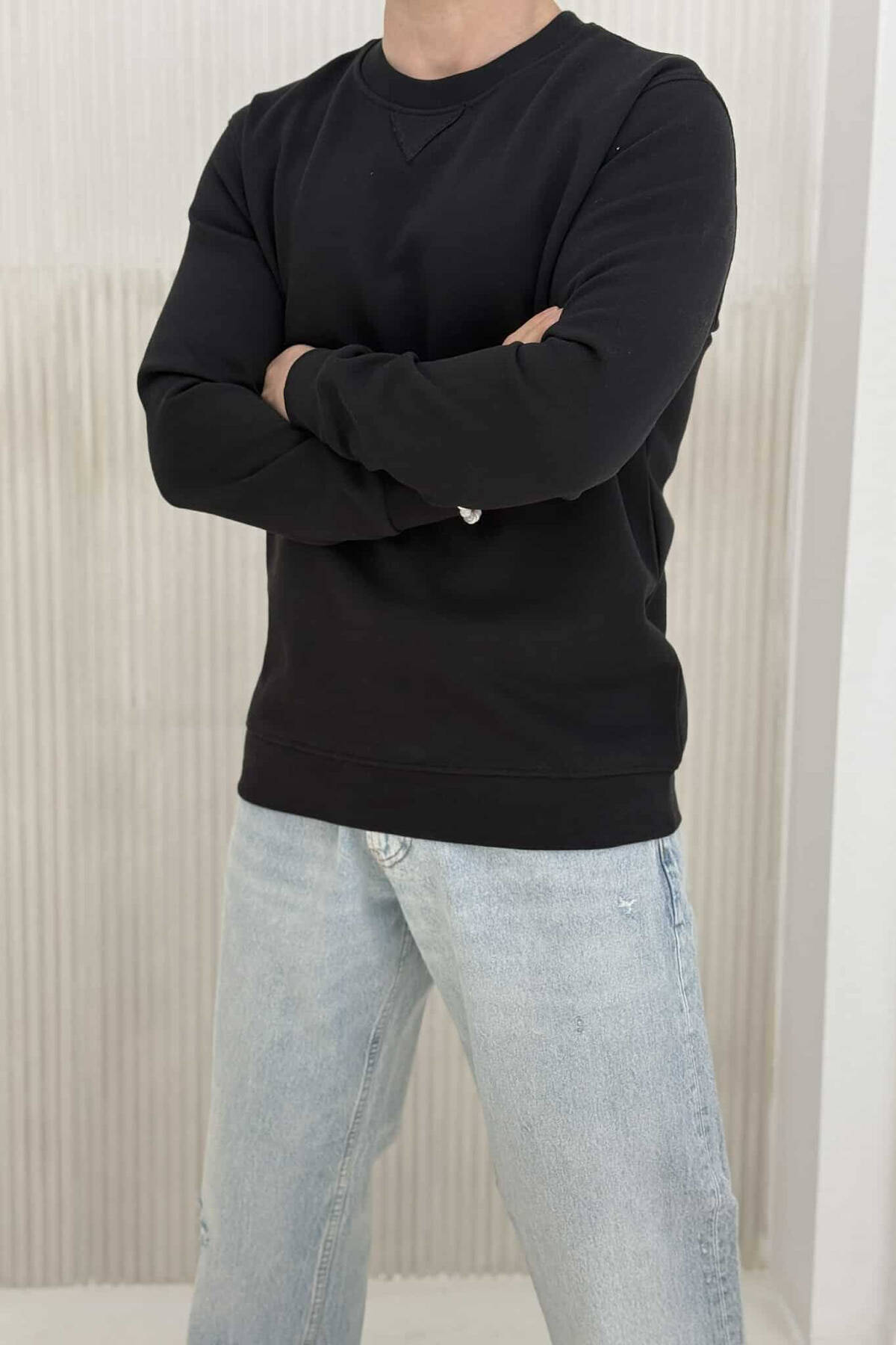 ROUND NECK ONE COLOR MEN SWEATSHIRT BLACK/ E ZEZE