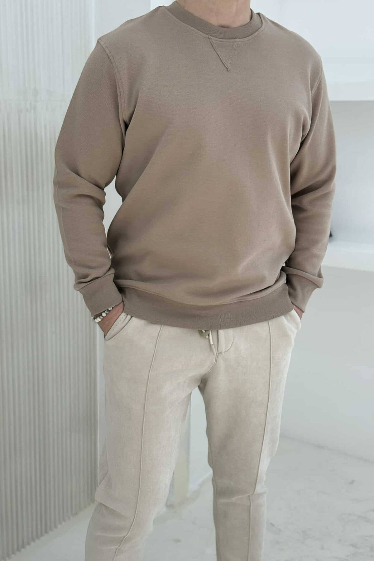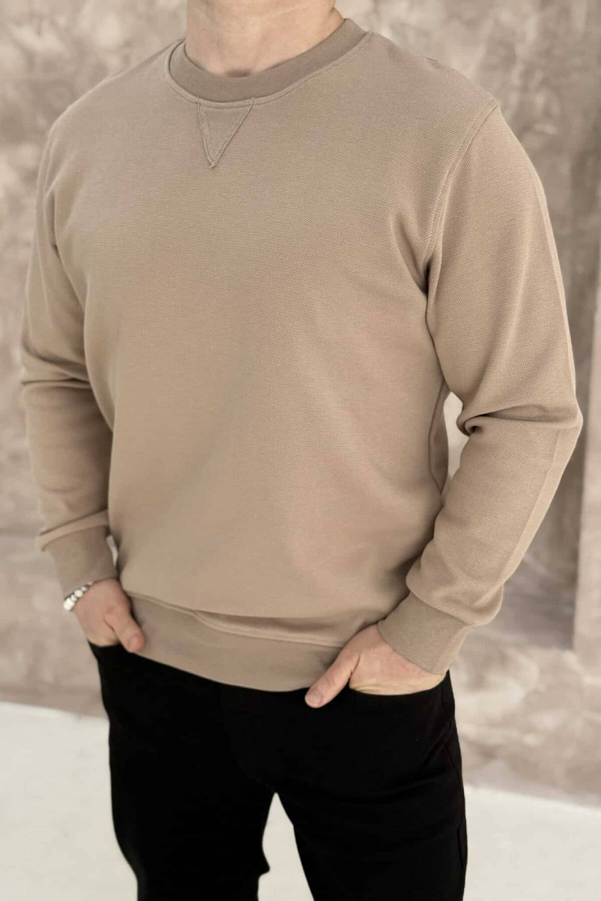 ROUND NECK ONE COLOR MEN SWEATSHIRT LIGHT BROWN/KAZB