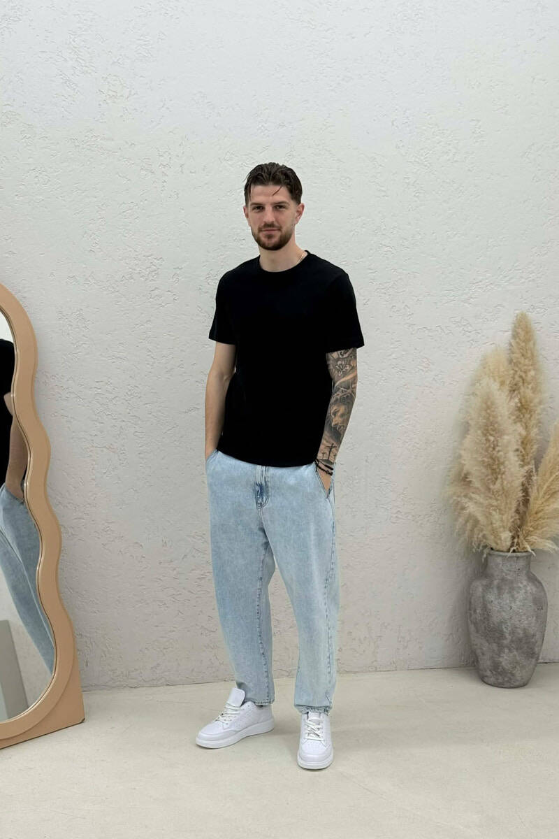 ROUND NECK ONE COLOR MEN T-SHIRT BLACK/ E ZEZE