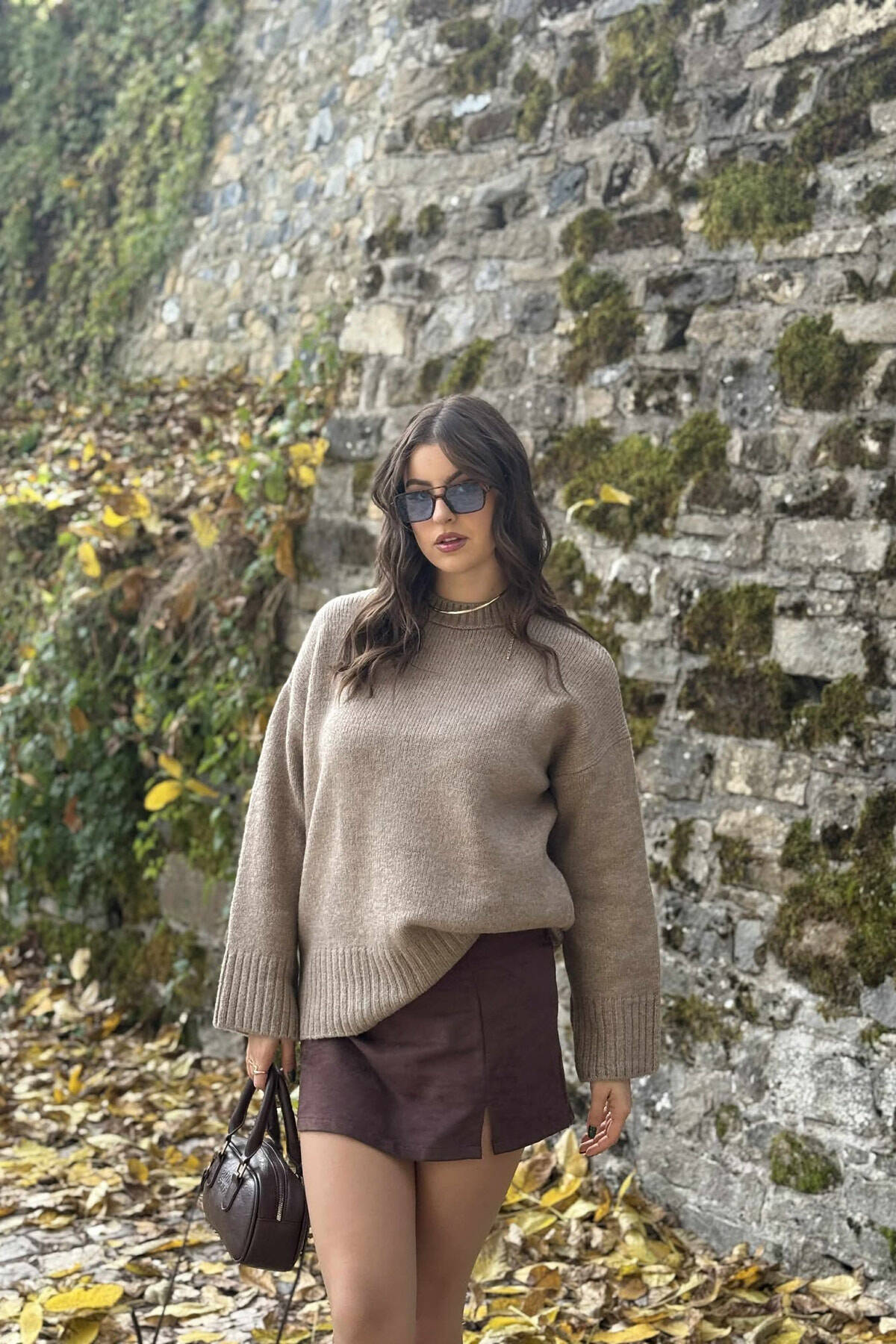 ROUND NECK ONE COLOR WOMEN SWEATER DARK BEIGE/BEZHE ERRET