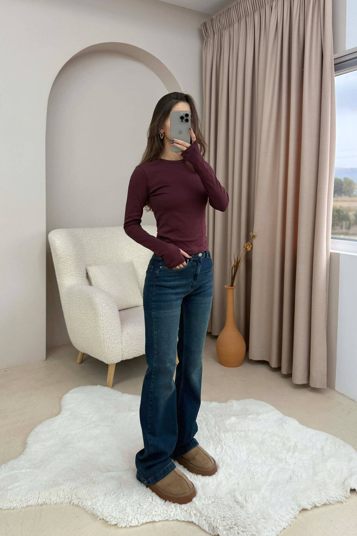ROUND NECK ONE COLOR WOMEN SWEATSHIRT BURGUNDY/VISHNJE