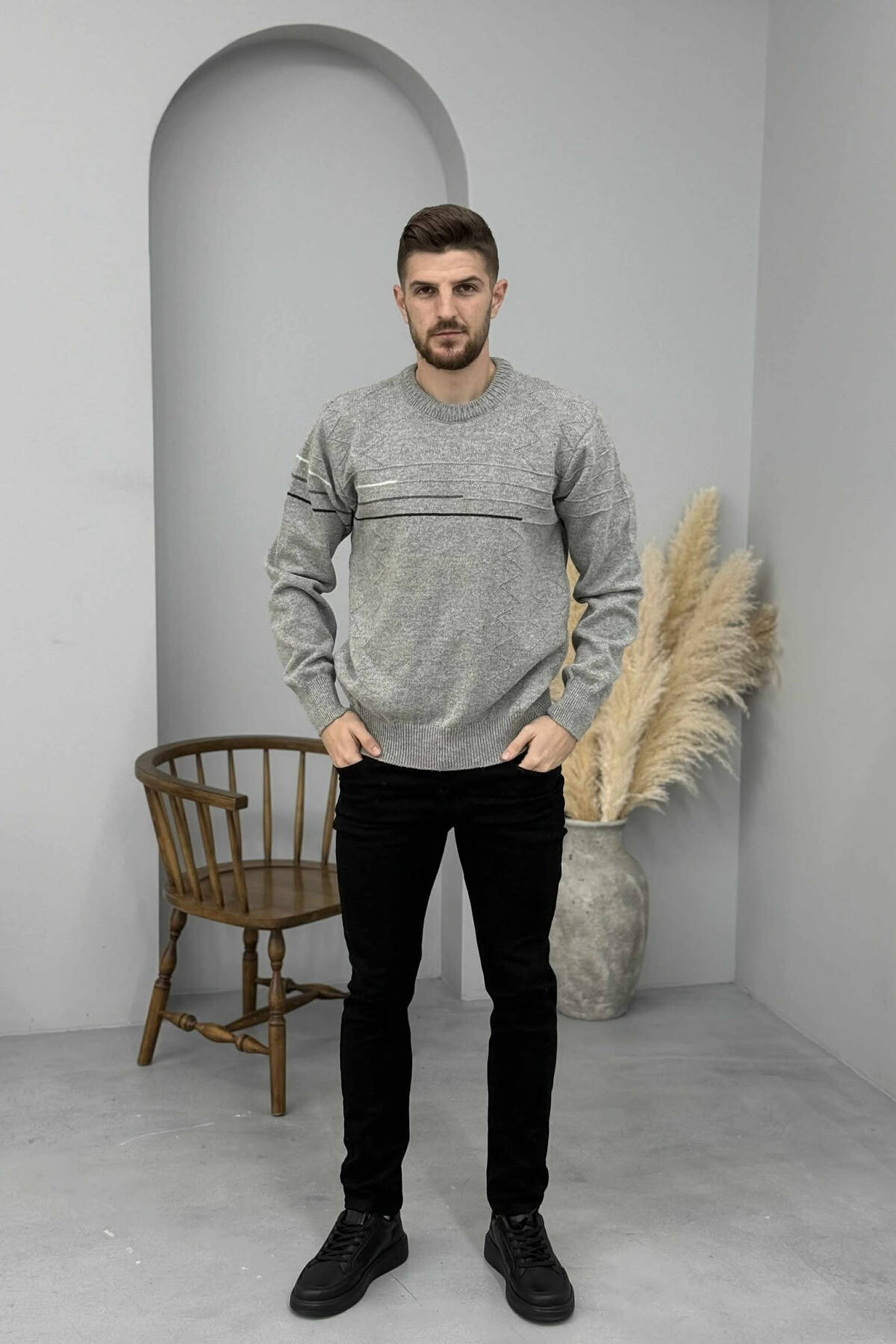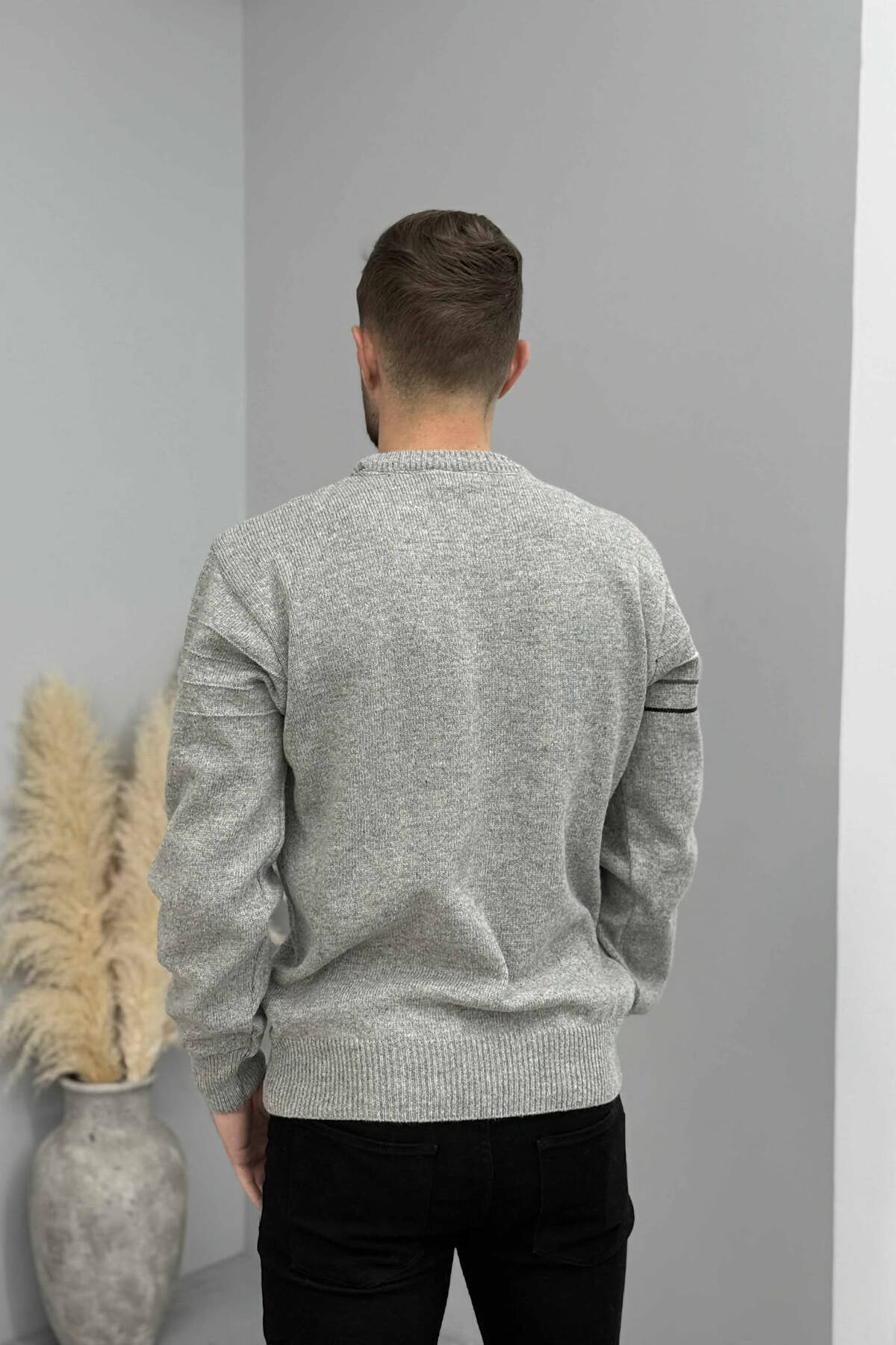 ROUND NECK SIMPLE DESIGN MEN SWEATER GREY/GRI
