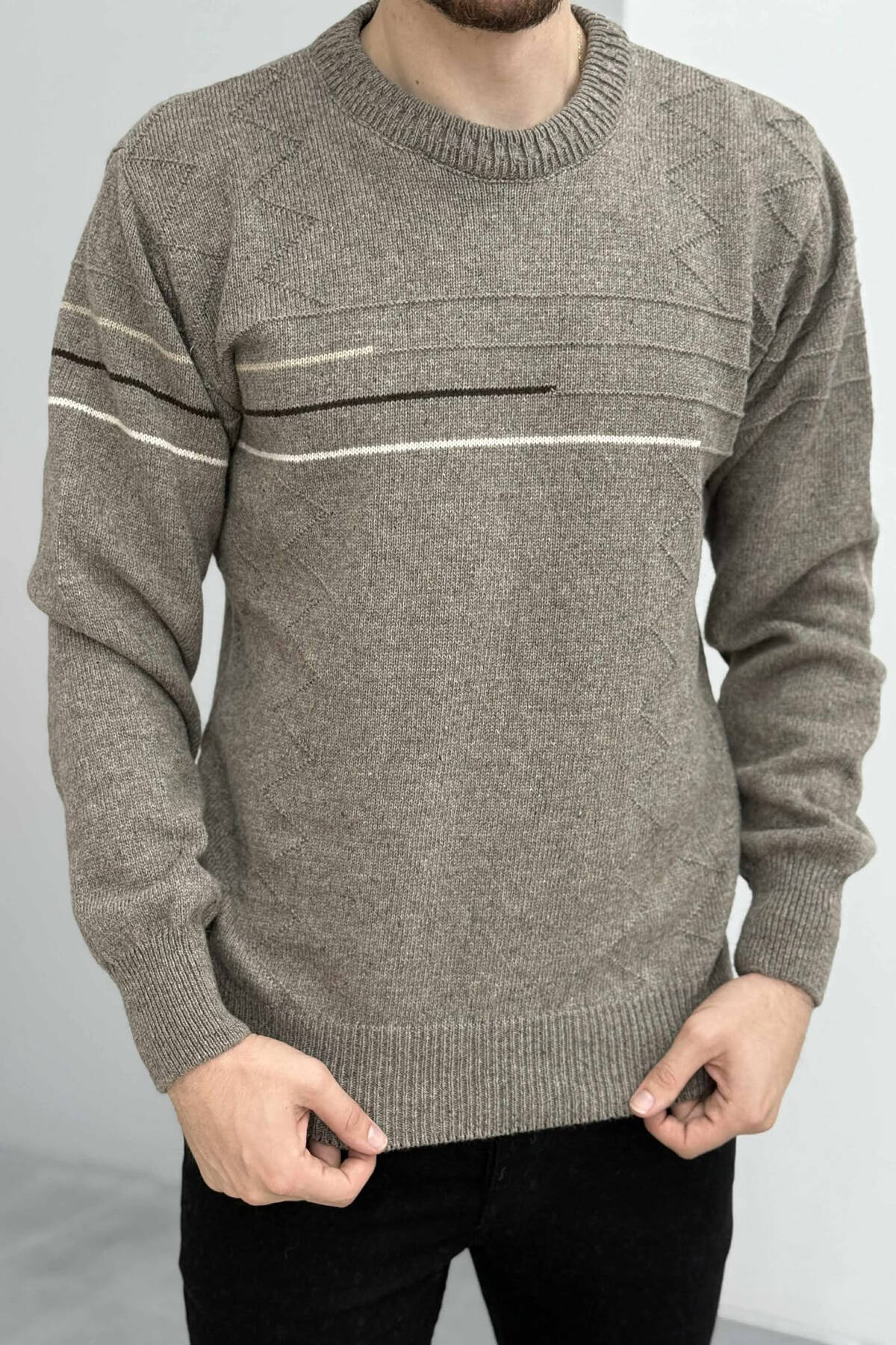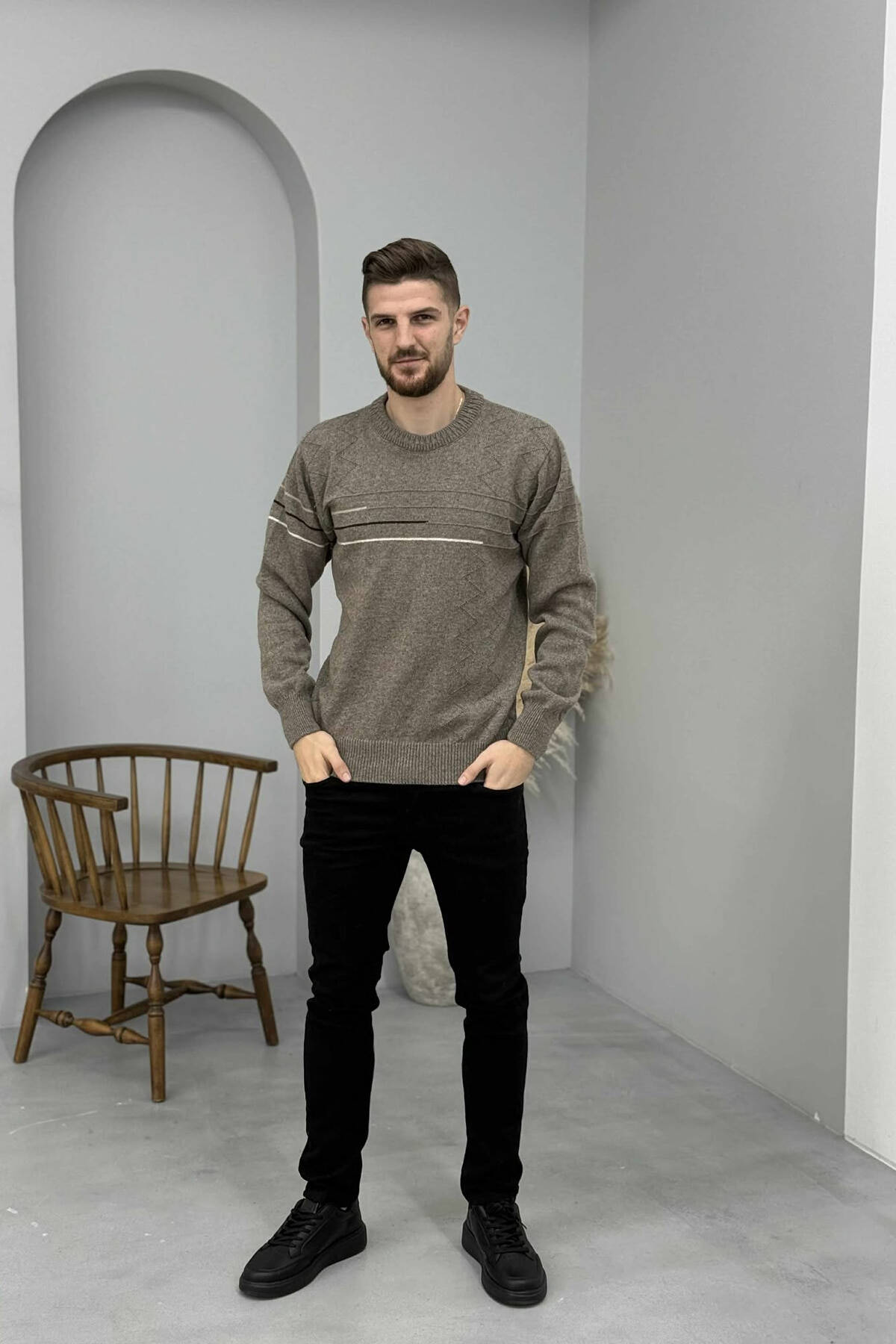 ROUND NECK SIMPLE DESIGN MEN SWEATER LIGHT BROWN/KAZB
