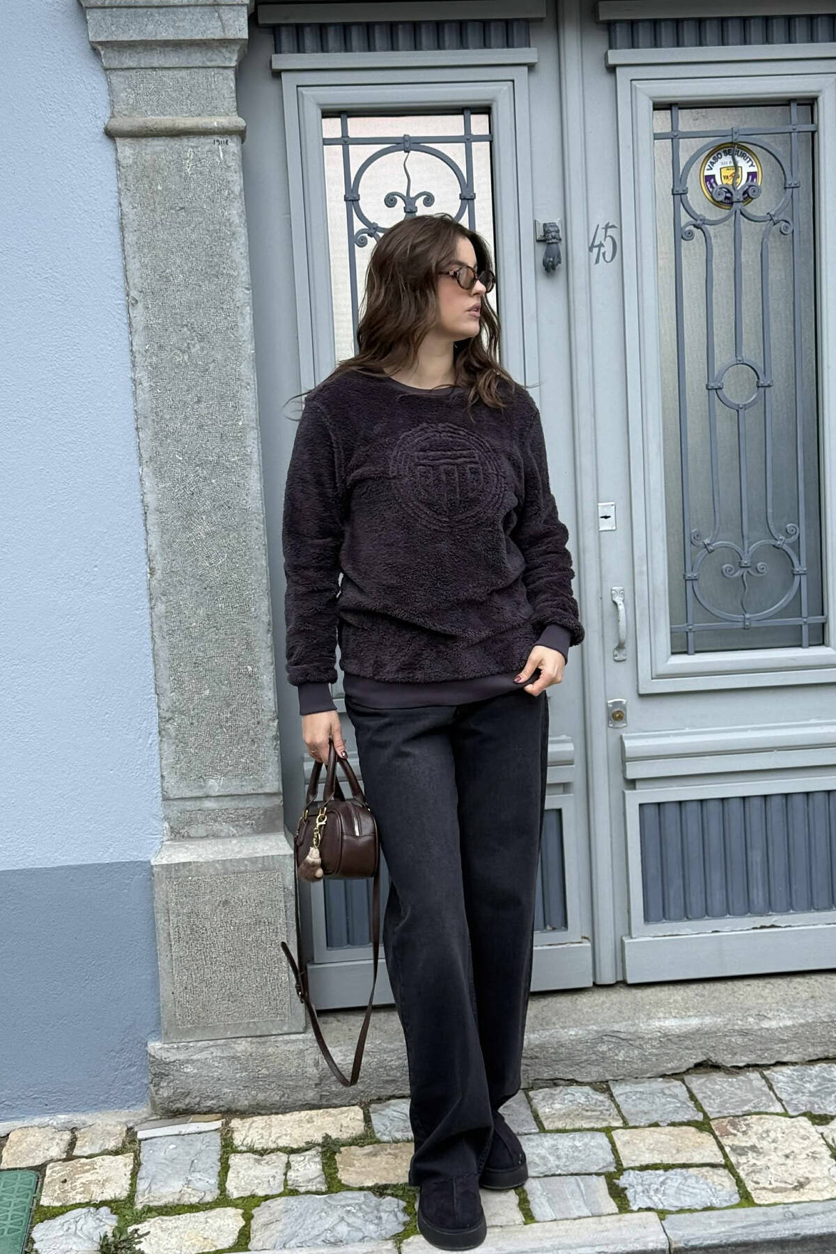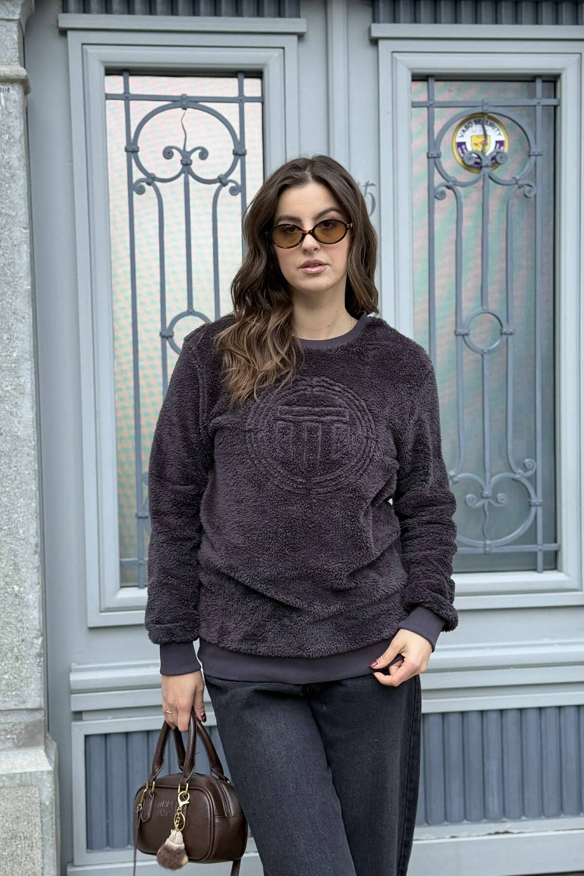 ROUND NECK SIMPLE FLUFFY WOMEN SWEATSHIRT DARK GREY/GEE
