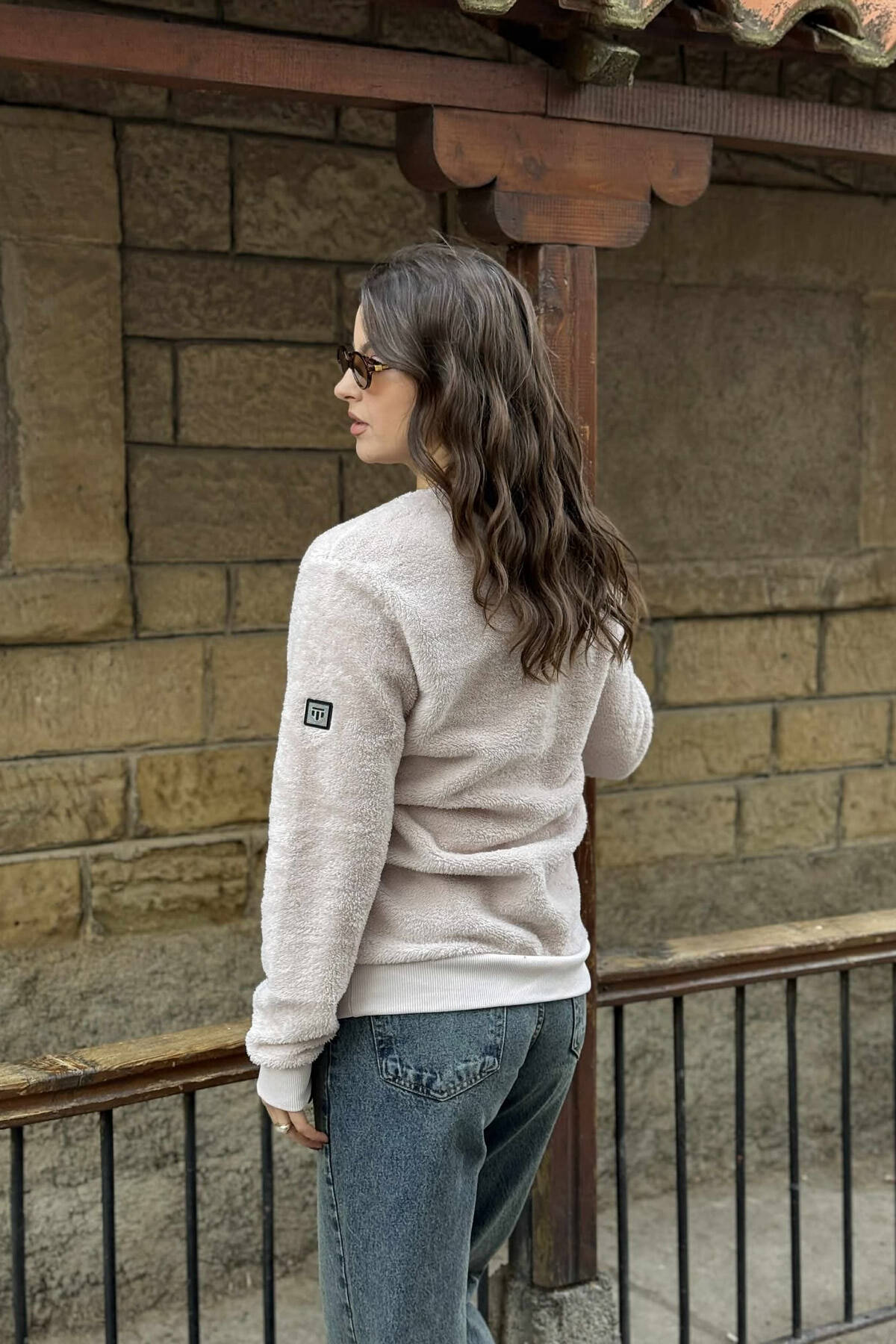 ROUND NECK SIMPLE FLUFFY WOMEN SWEATSHIRT POWDER/PUDER