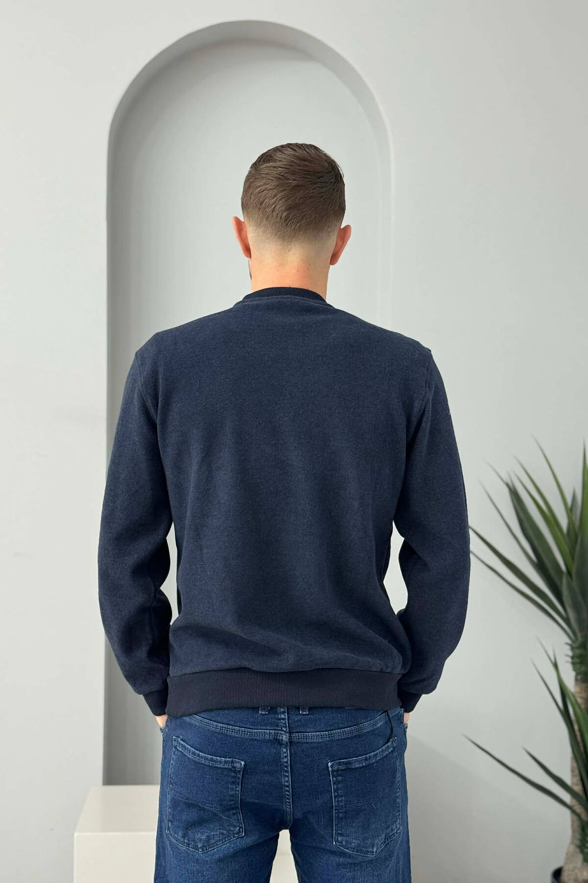 ROUND NECK SIMPLE MEN SWEATER DARK BLUE/BEE