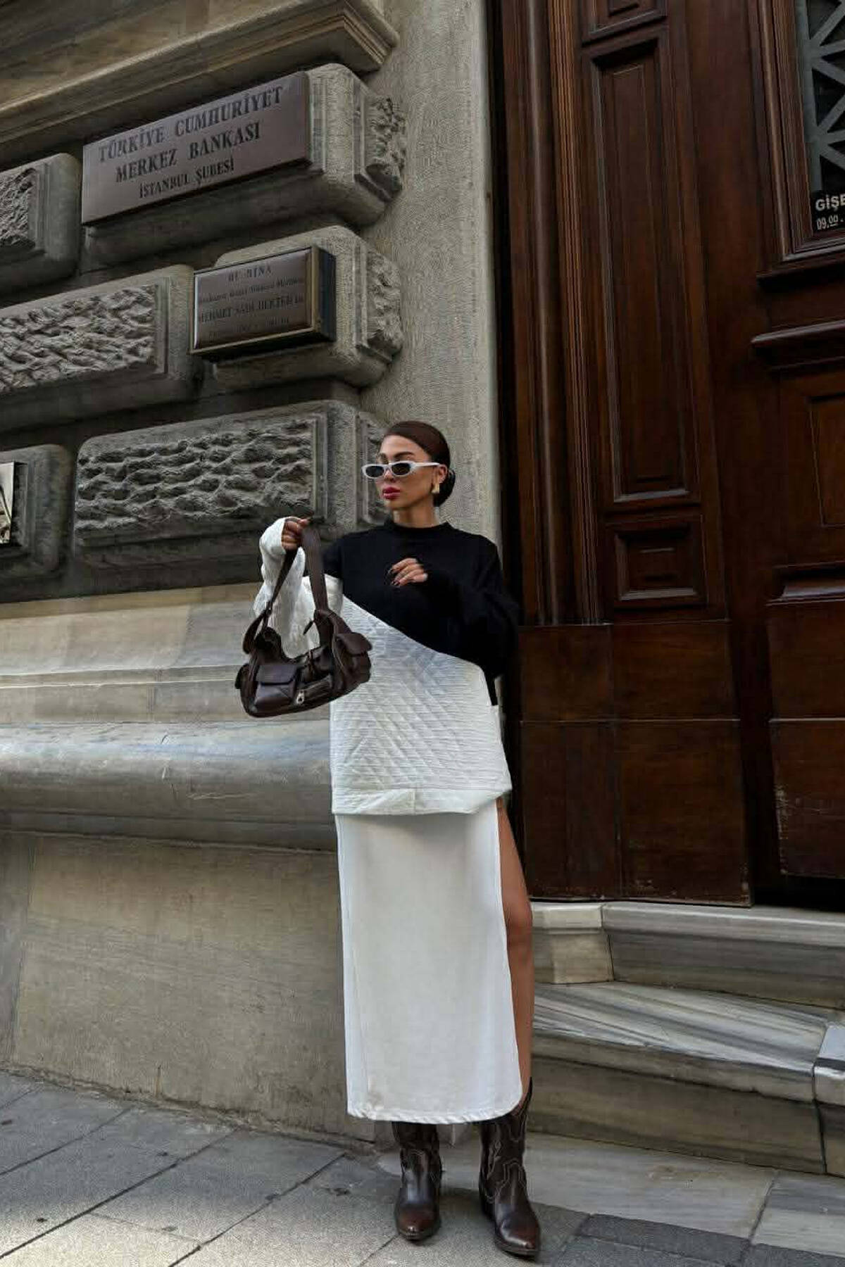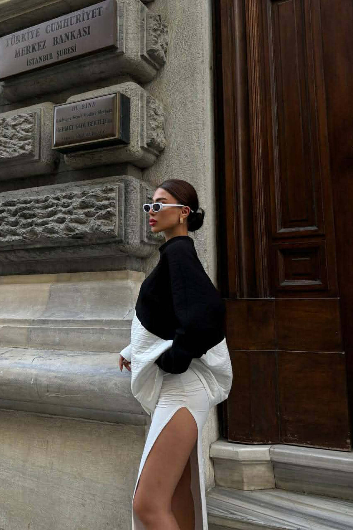 HALF SLEEVES DETAIL ONE COLOR WOMEN SWEATSHIRT WHITE-E BARDHE