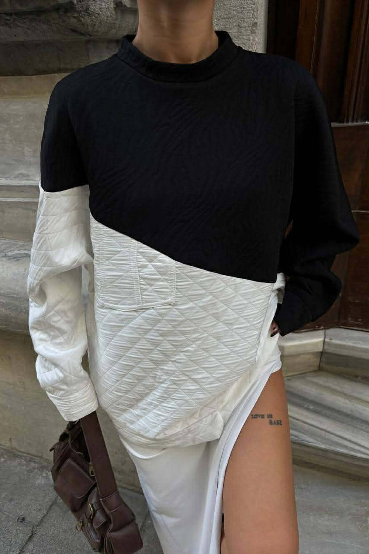 ROUND NECK SIMPLE WOMEN SWEATSHIRT BLACK/ E ZEZE