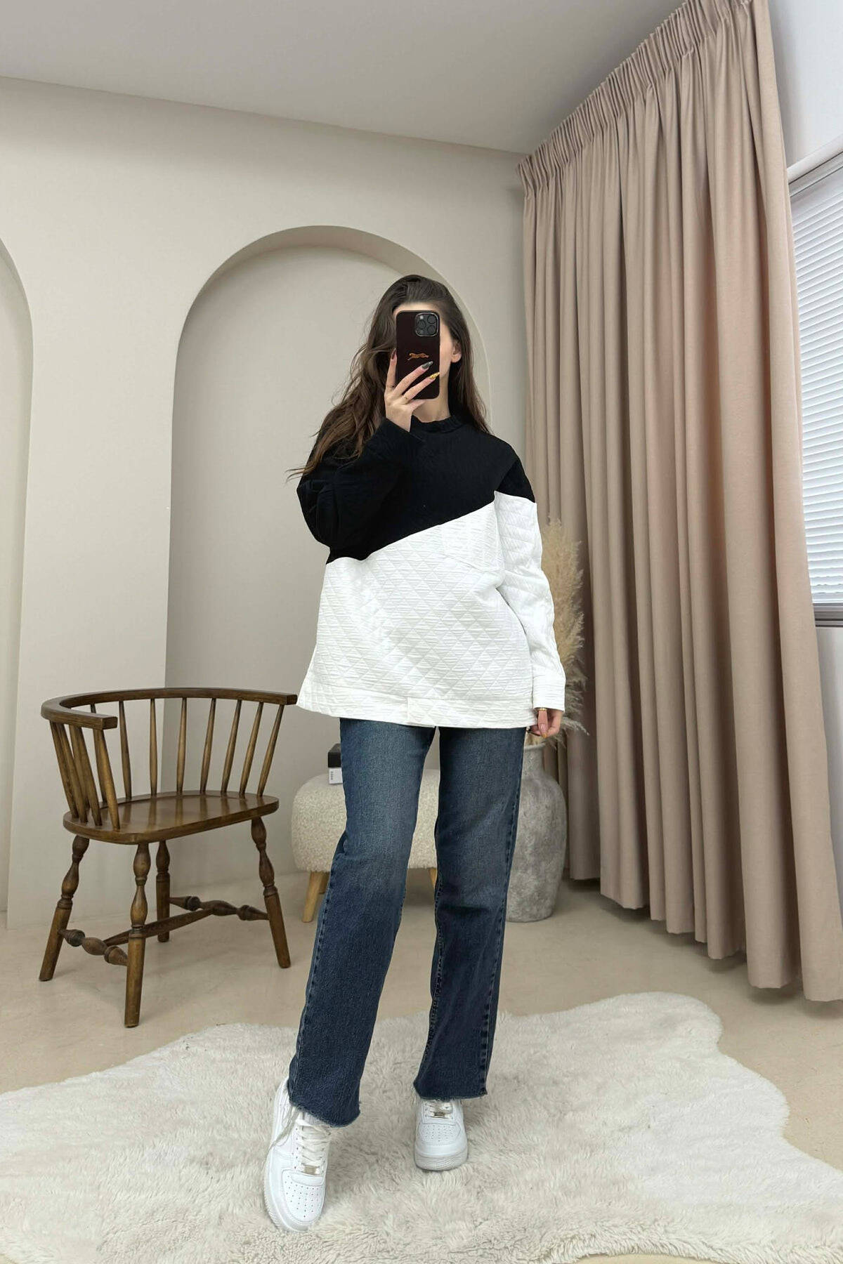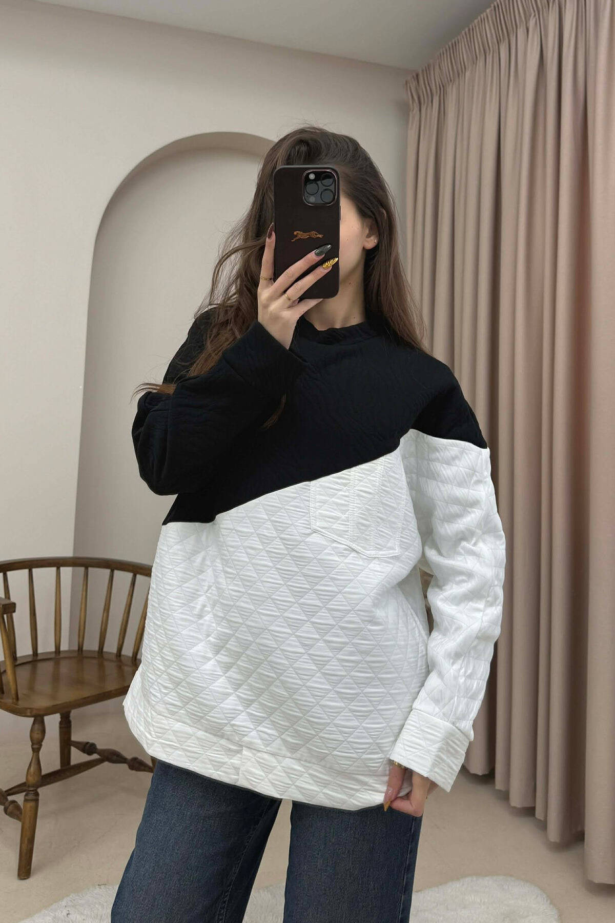 ONE COLOR TULLE HIGH NECK WOMAN SWATSHIRT BLACK/ E ZEZE