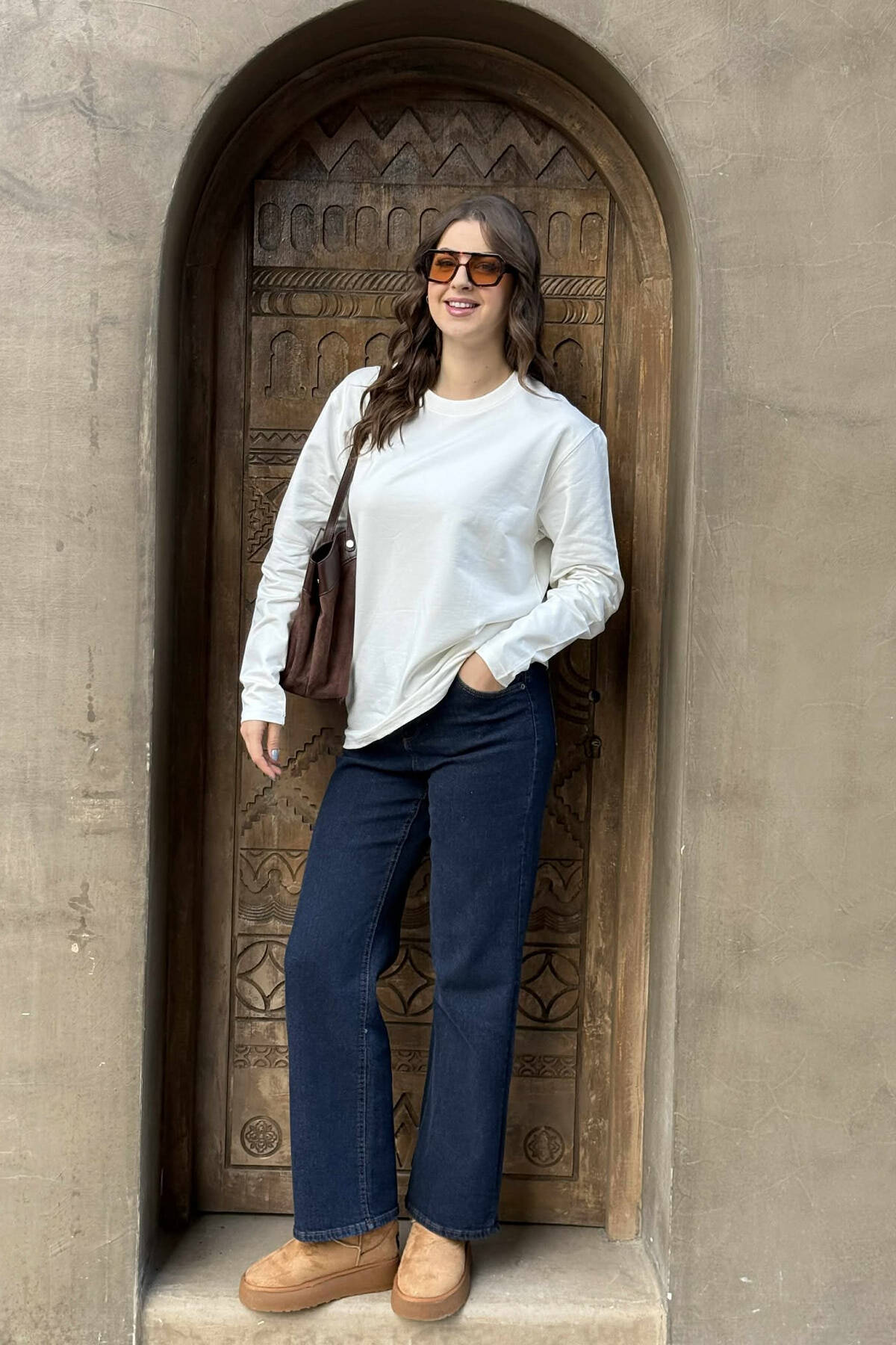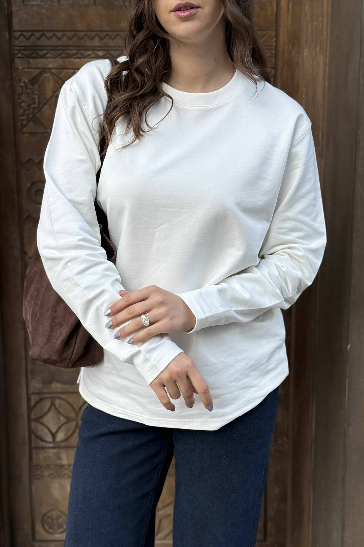 ROUND NECK SIMPLE WOMEN SWEATSHIRT WHITE-E BARDHE