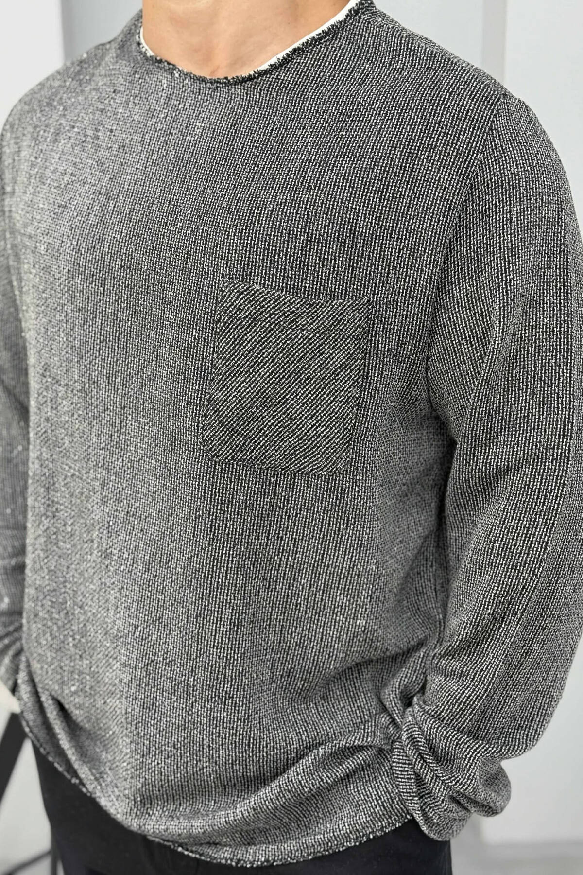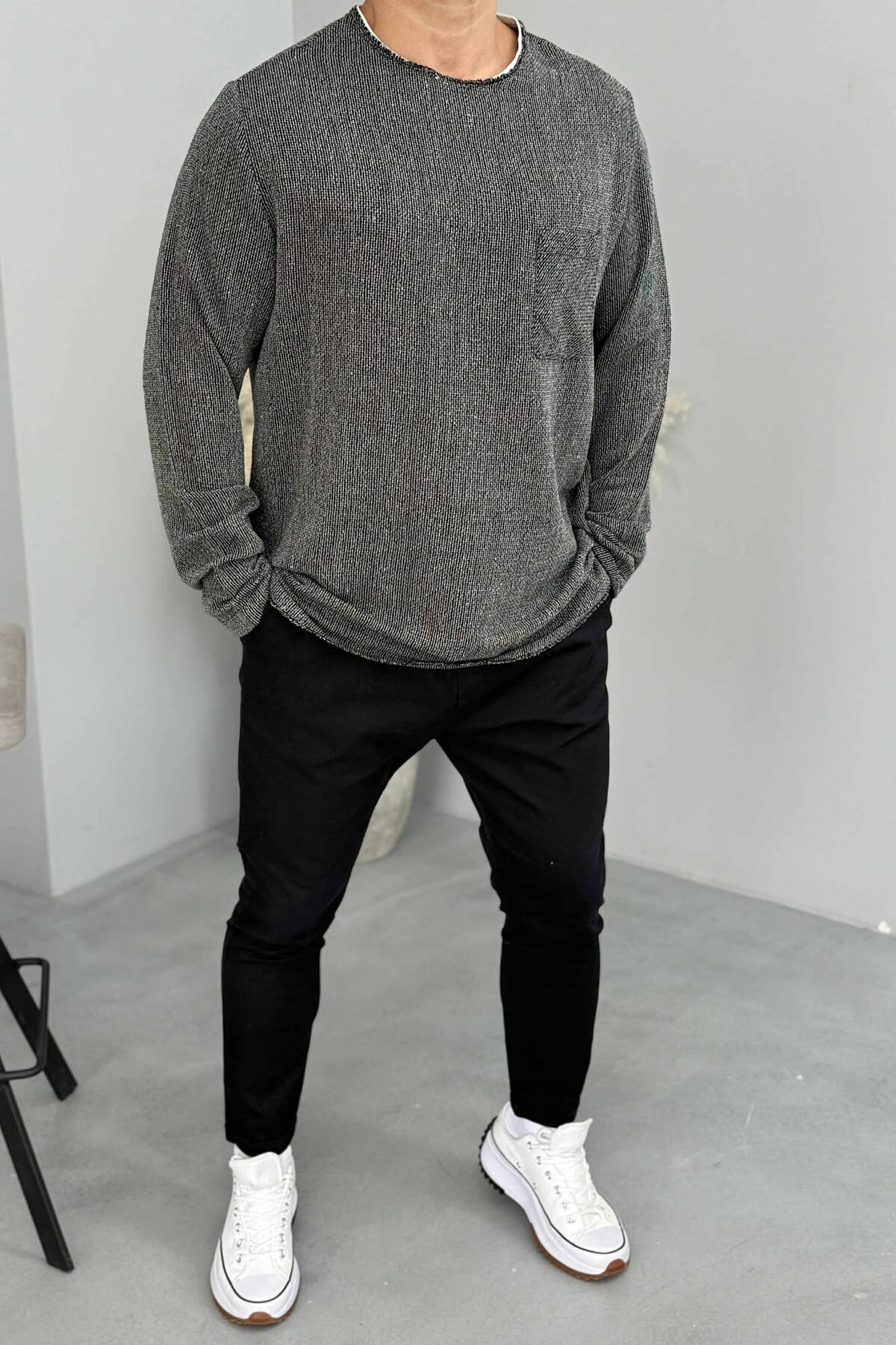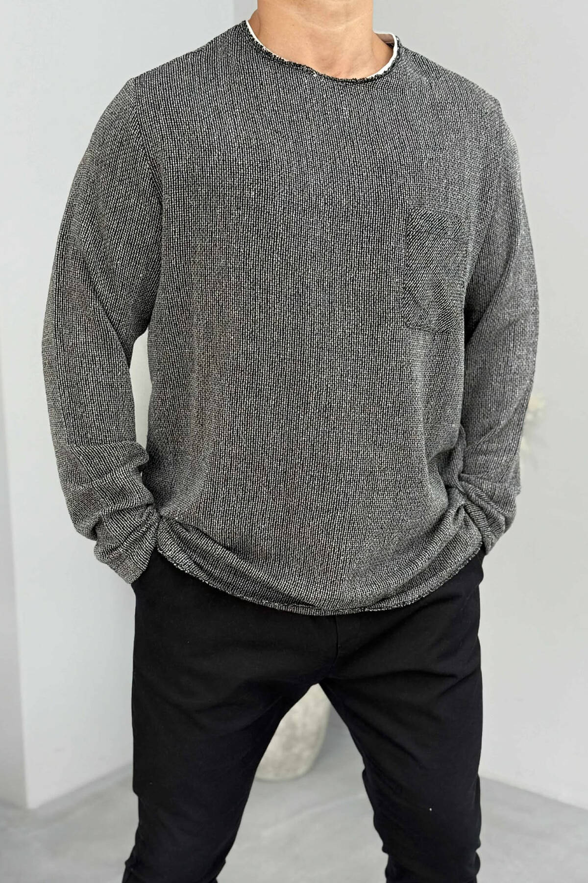 ROUND NECK SINGLE POCKET MEN SWEATER BLACK/ E ZEZE