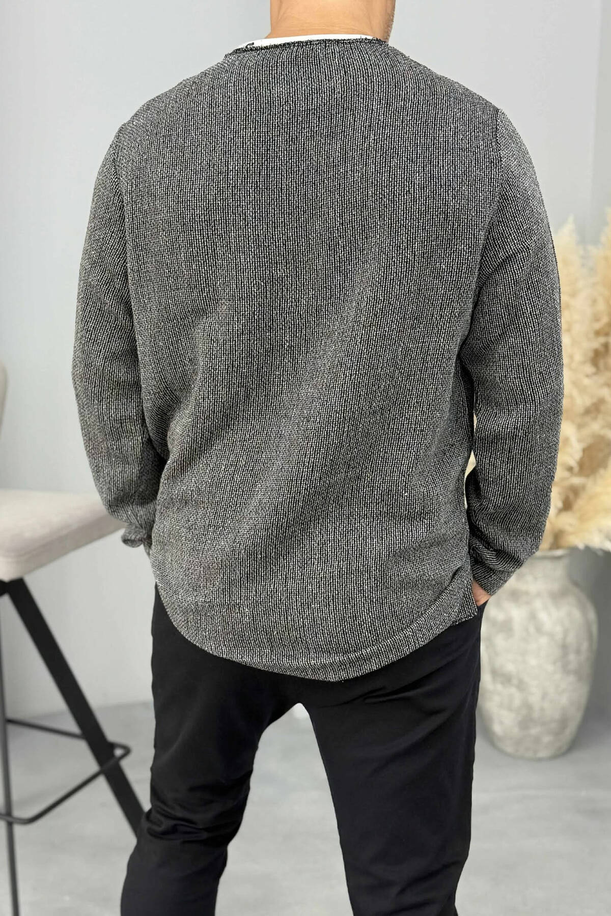 KNITTED ROUND NECK MEN SWEATER GREY/GRI