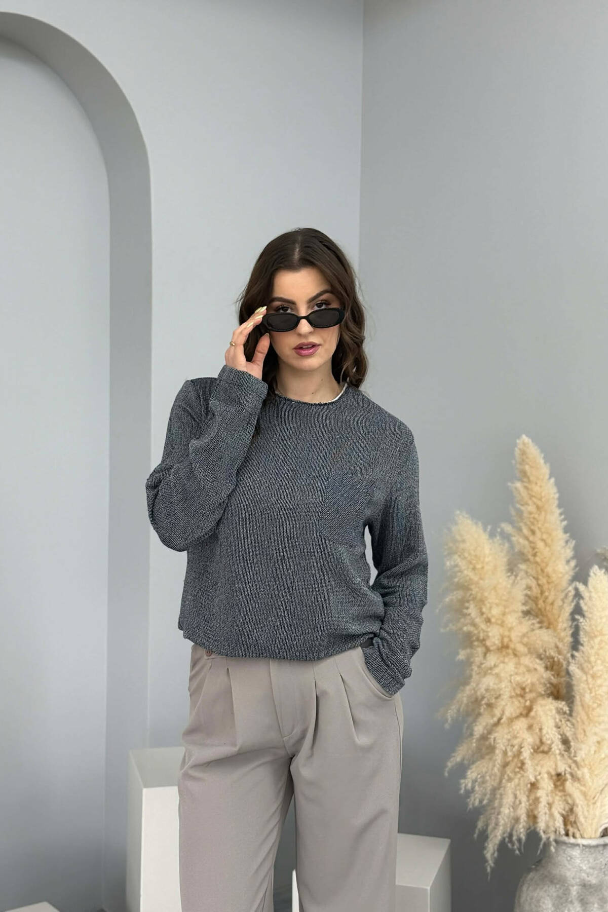 ROUND NECK SINGLE POCKET WOMEN SWEATER BLUE/BLU
