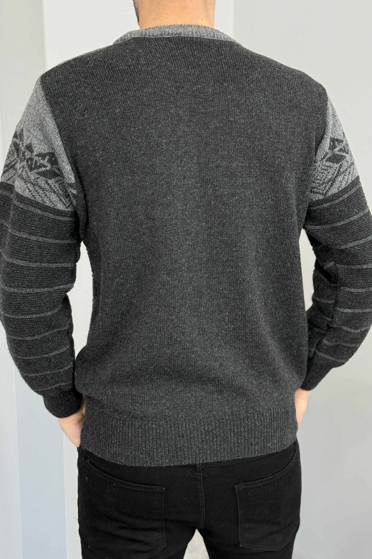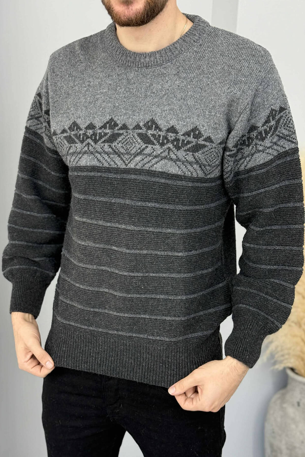 ROUND NECK STRIPES MEN SWEATER DARK GREY/GEE
