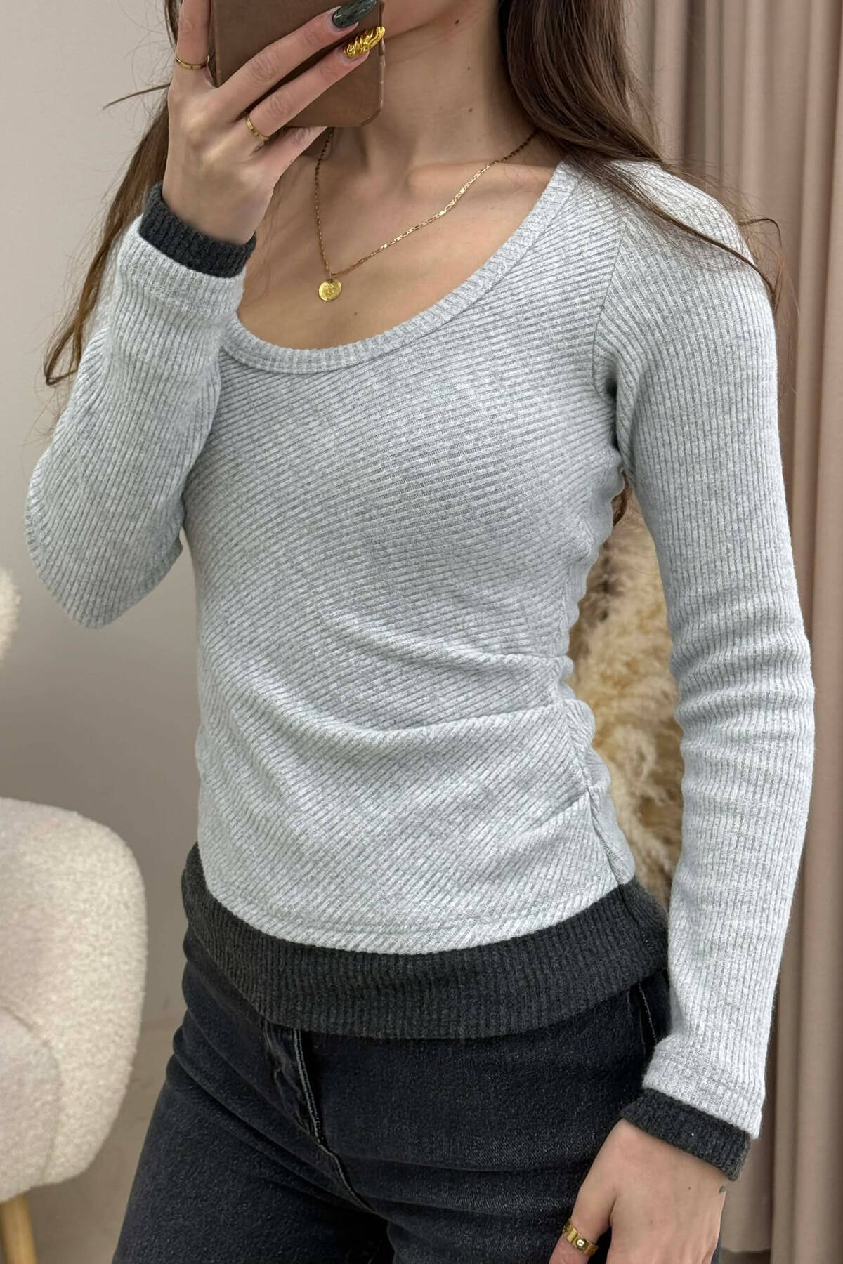 ROUND OPEN NECK SIMPLE WOMEN SWEATSHIRT LIGHT GREY/GZ