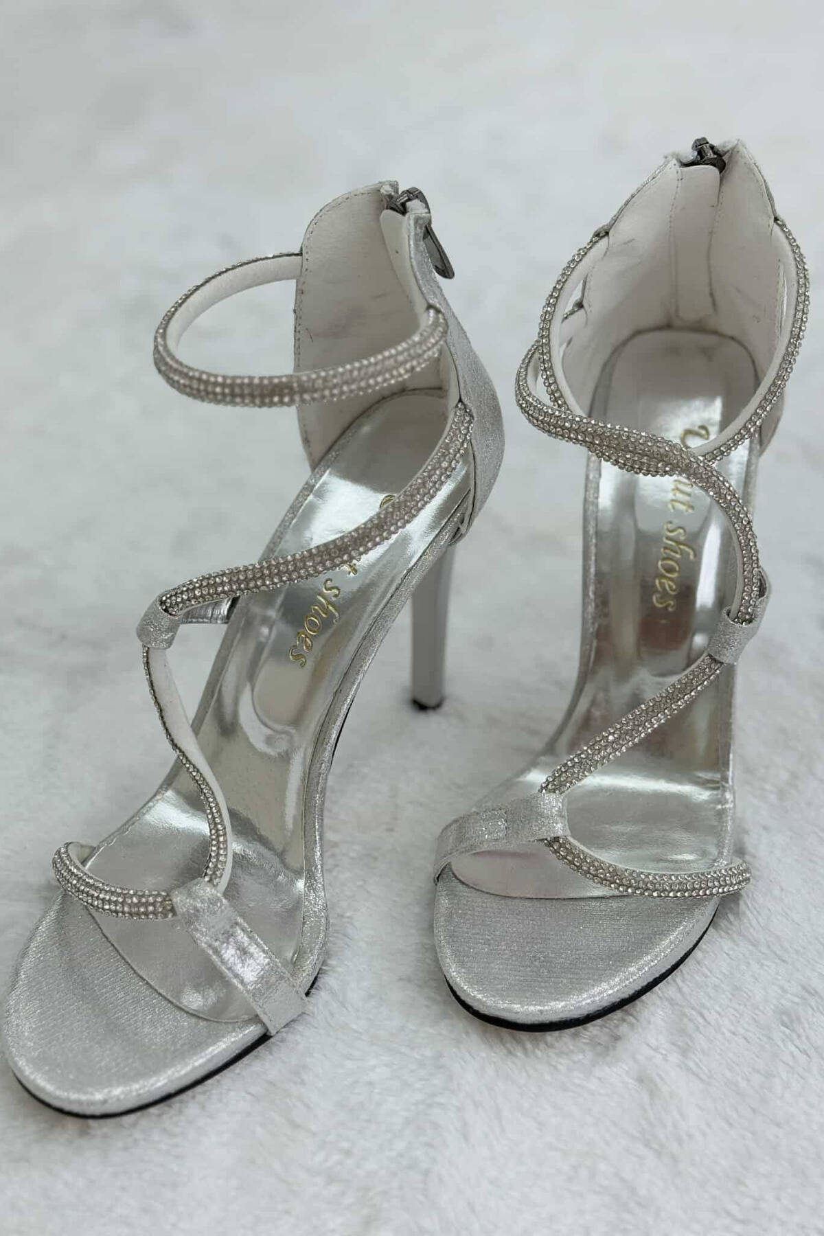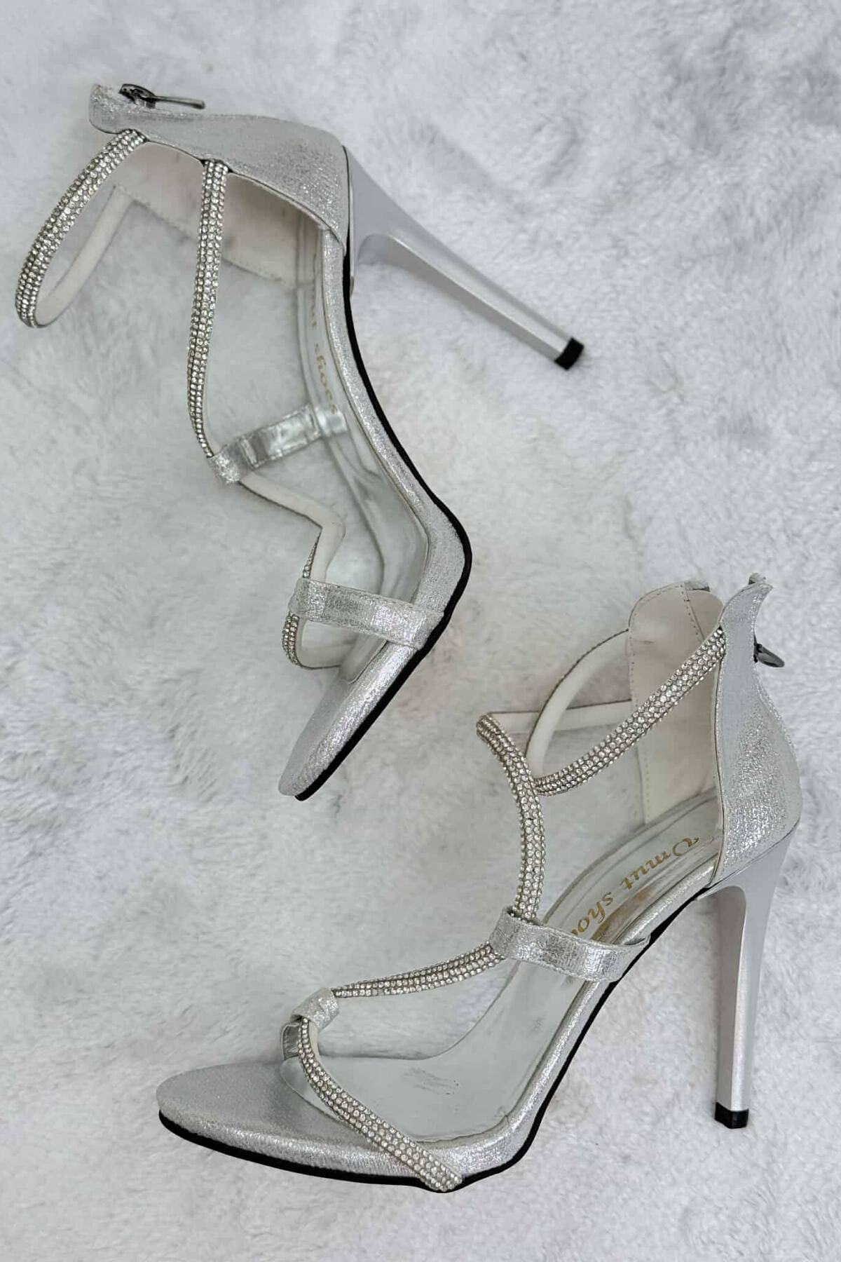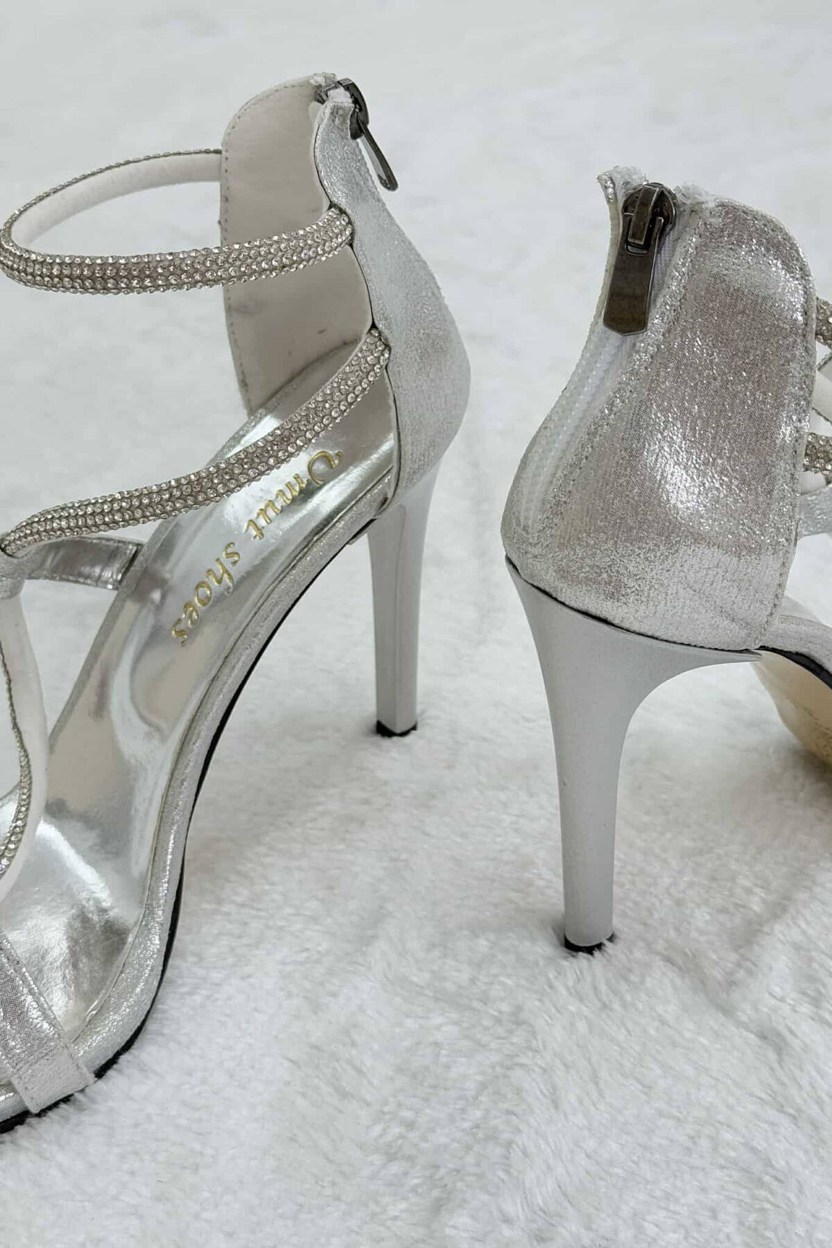SANDALE ME TAKË ME DETAJIN E DIAMANTËVE PËR FEMRA NË NGJYRËN ARGJEND