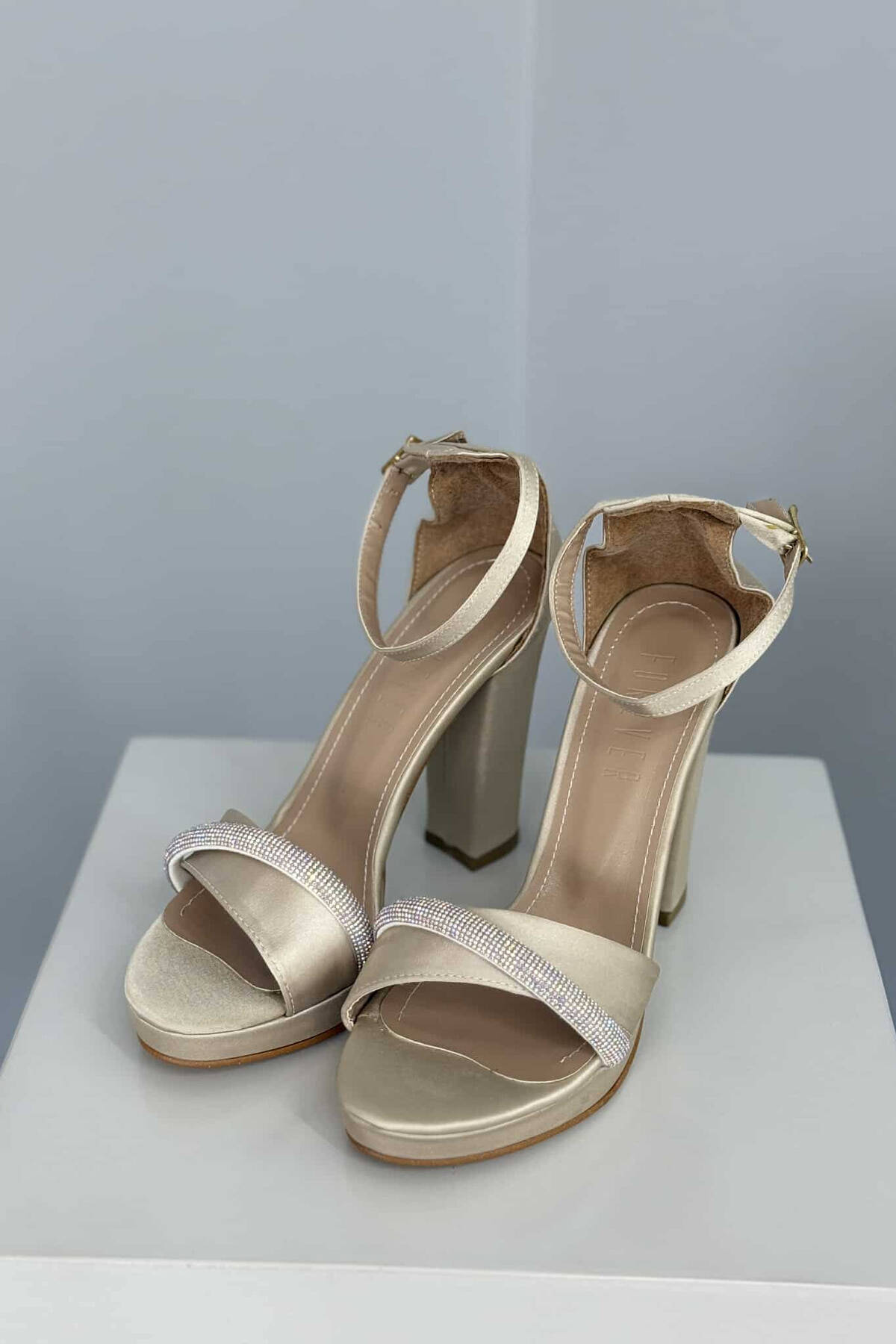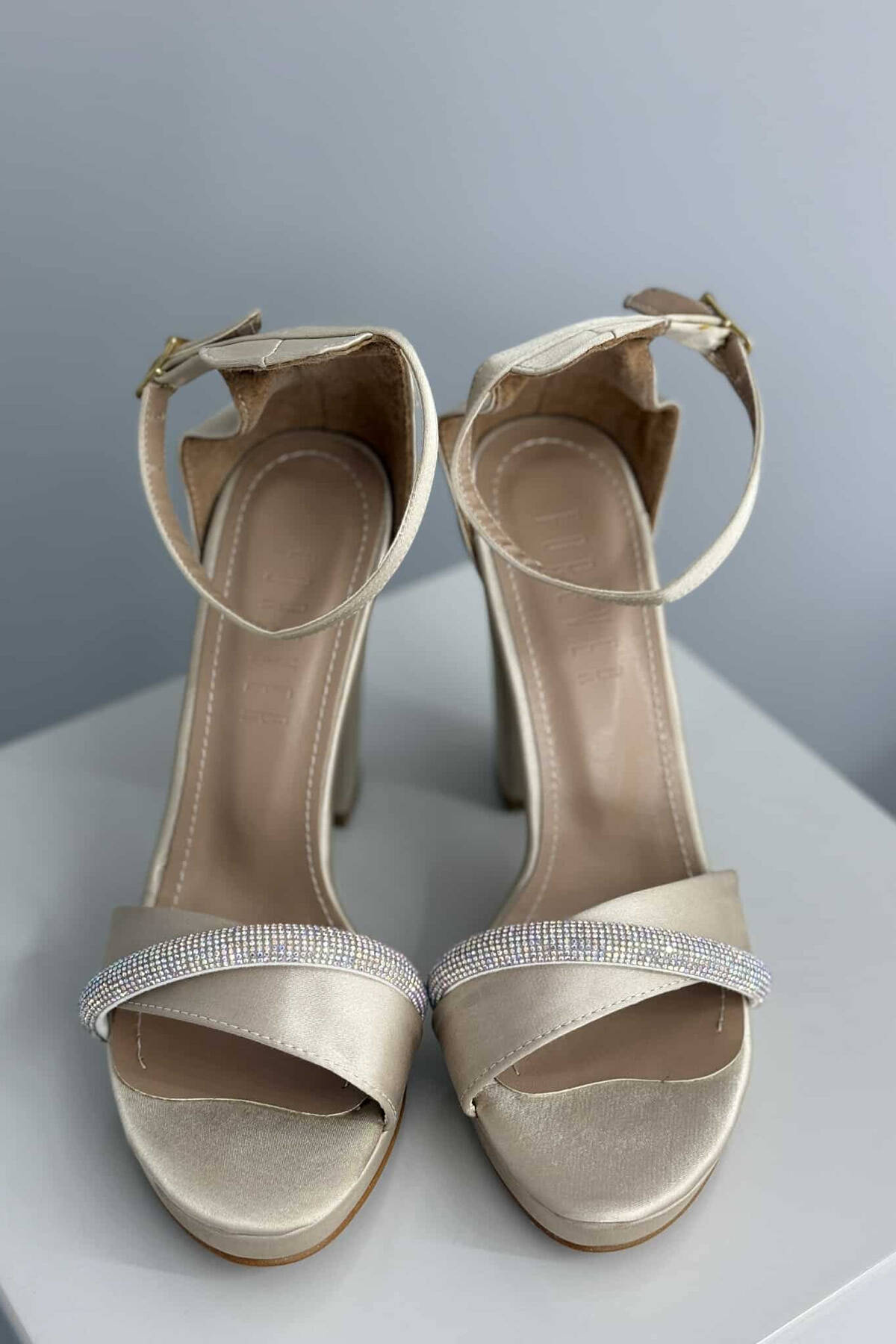 SANDALE ME TAKË ME DETAJIN E DIAMANTËVE PËR FEMRA NË NGJYRËN BEZHË