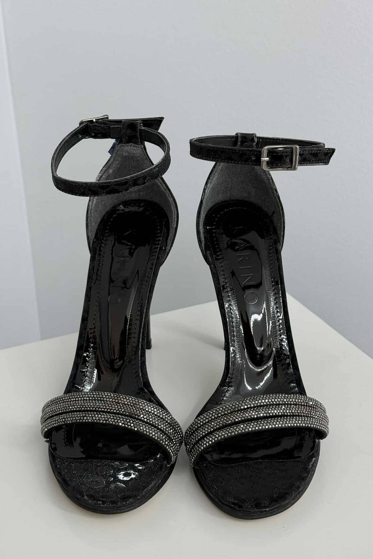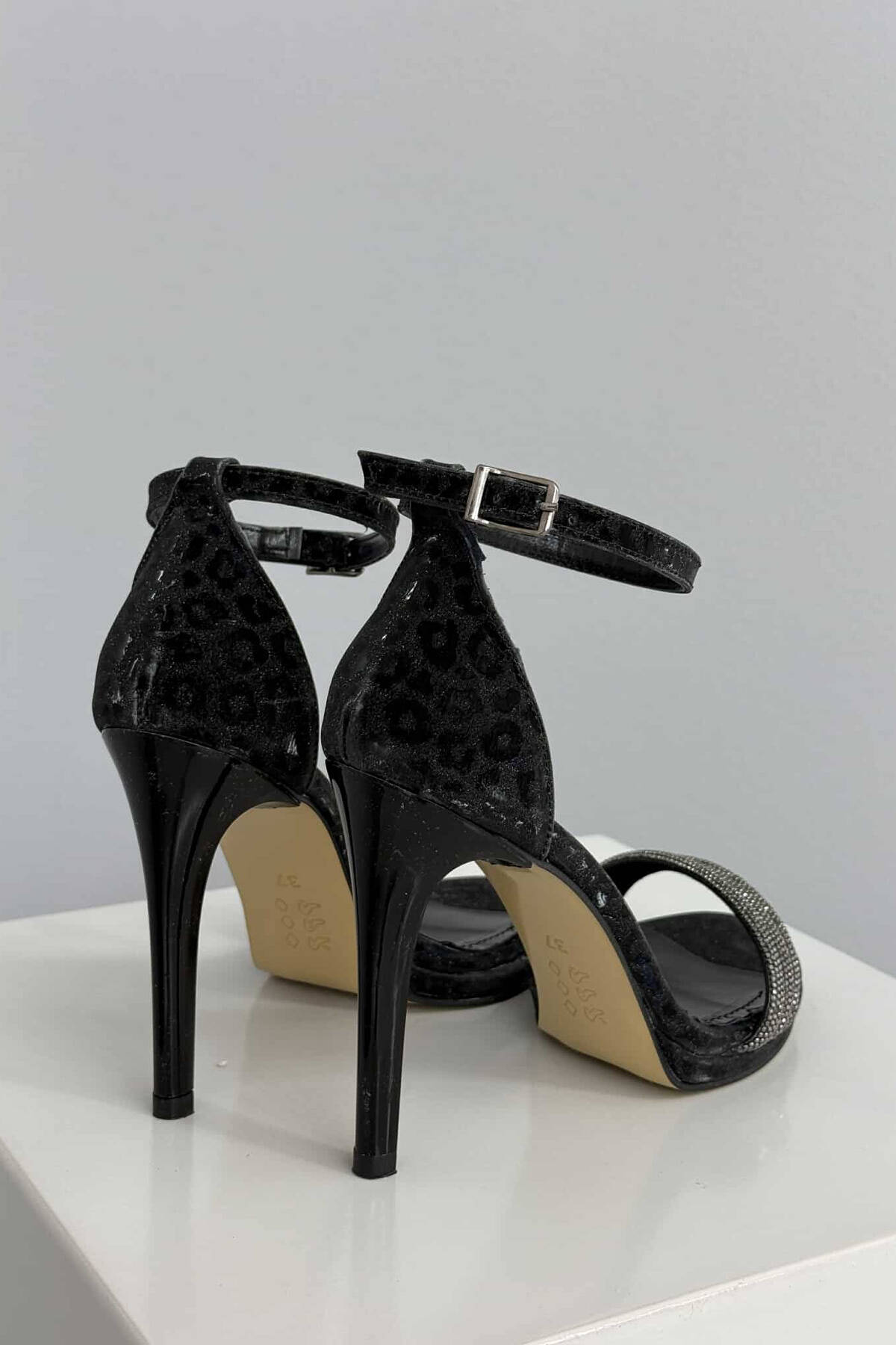 SANDALE ME TAKË ME DETAJIN E DIAMANTËVE PËR FEMRA NË NGJYRËN E ZEZË