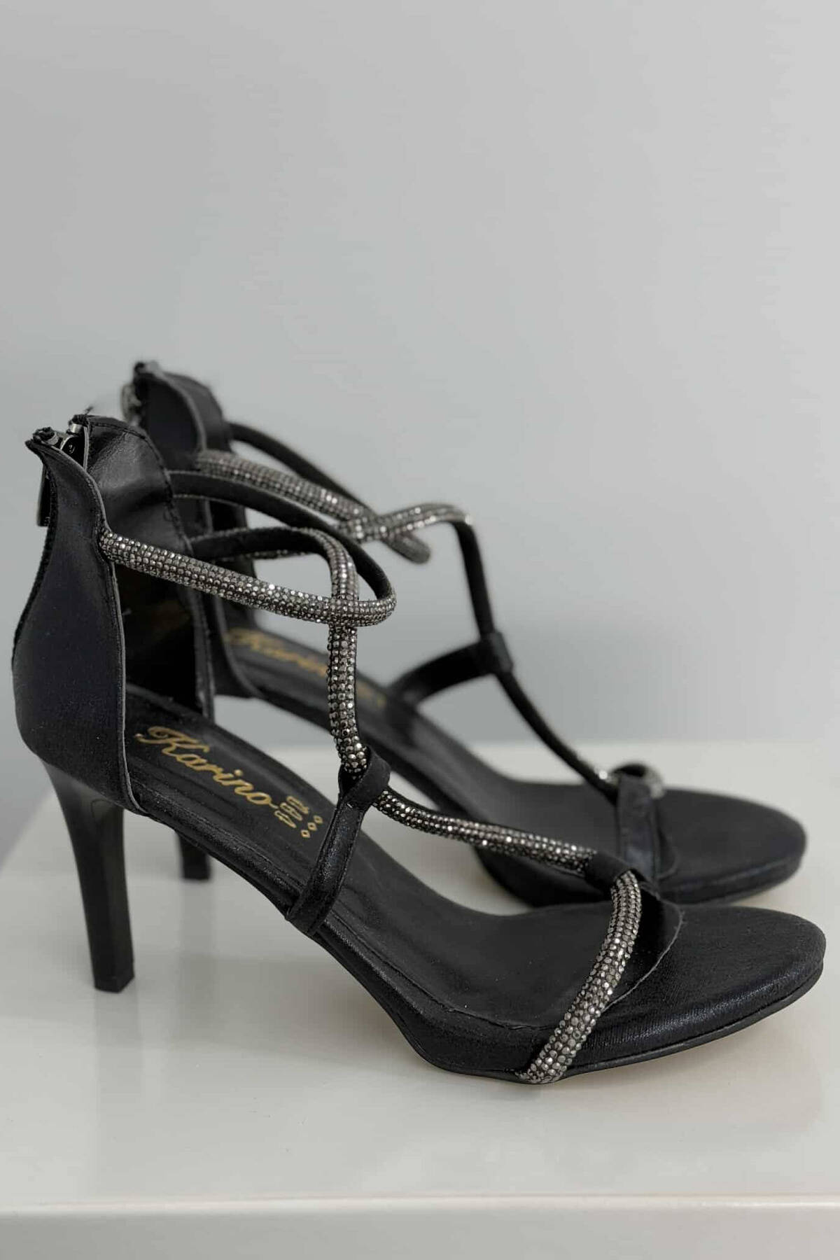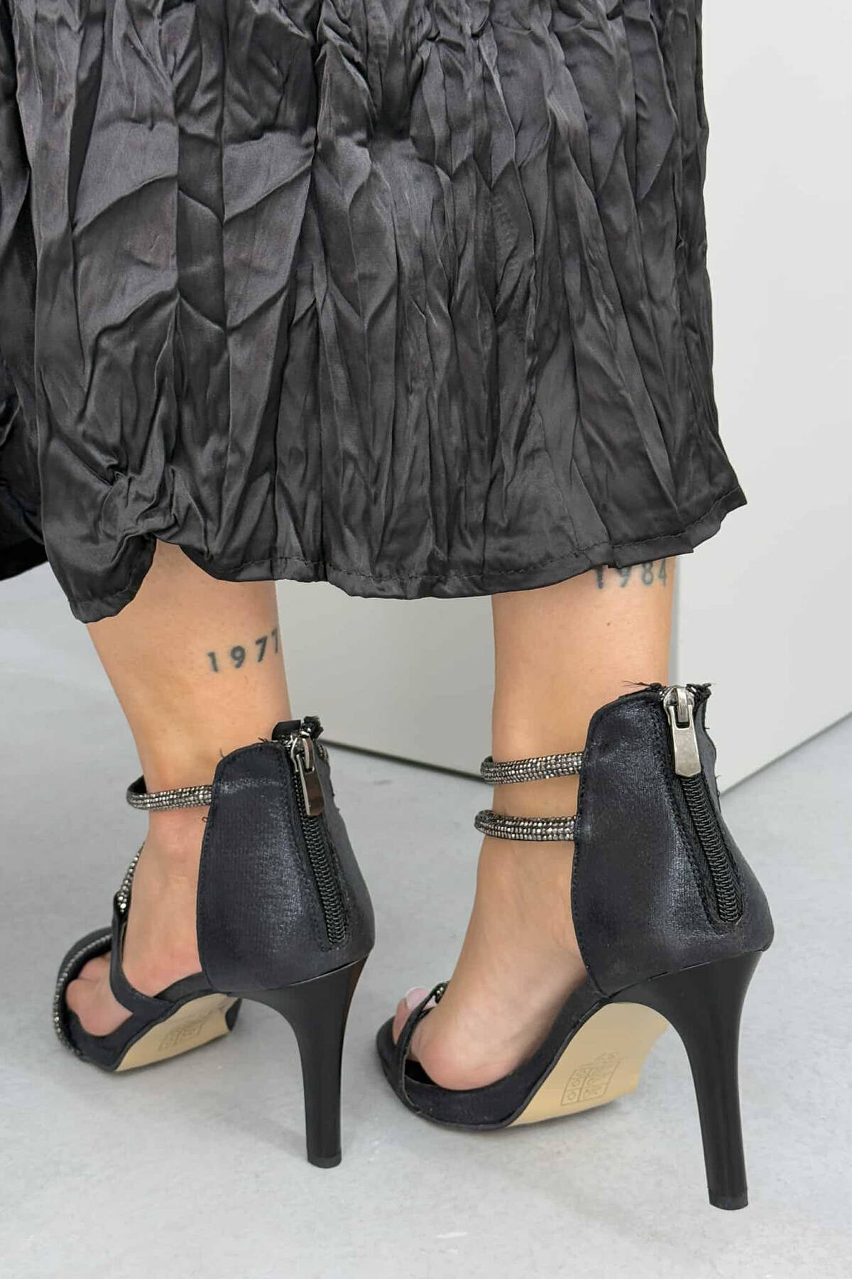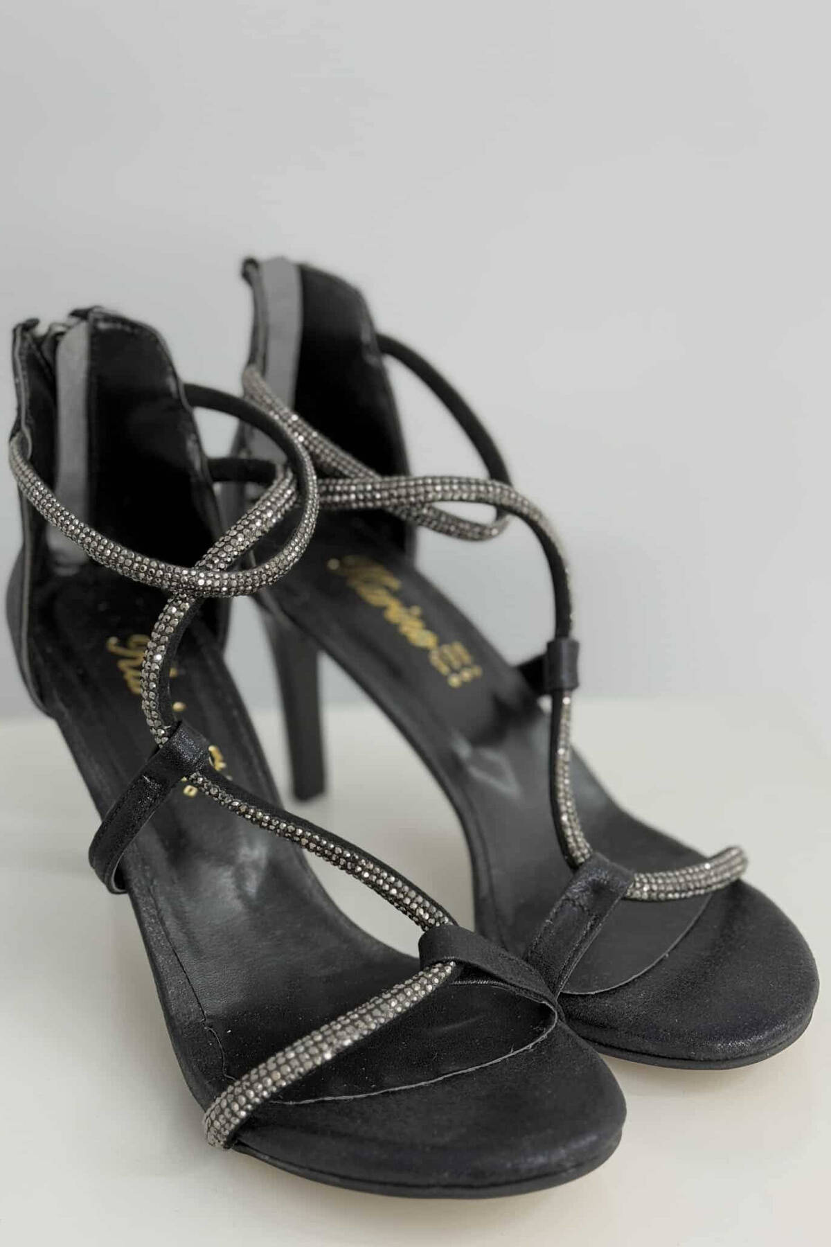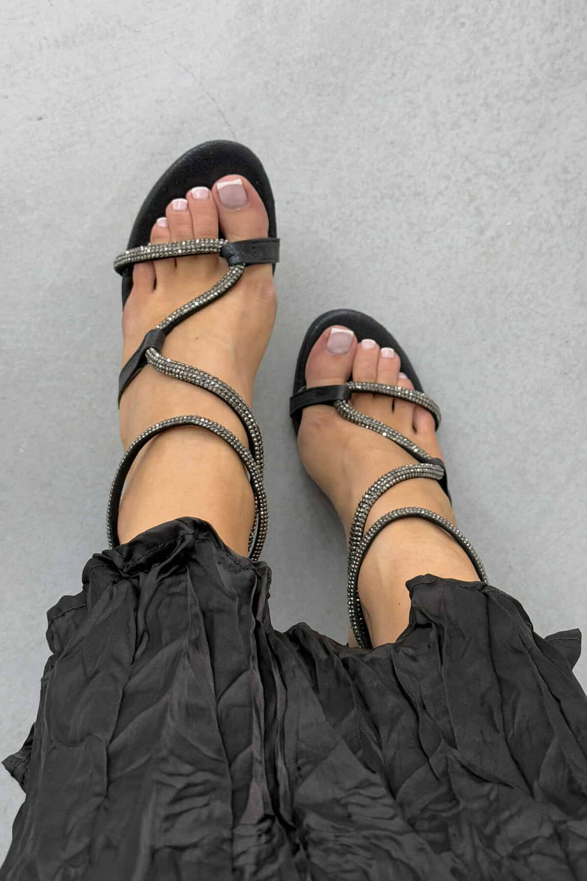 SANDALE ME TAKË ME DETAJIN E DIAMANTËVE PËR FEMRA NË NGJYRËN E ZEZË