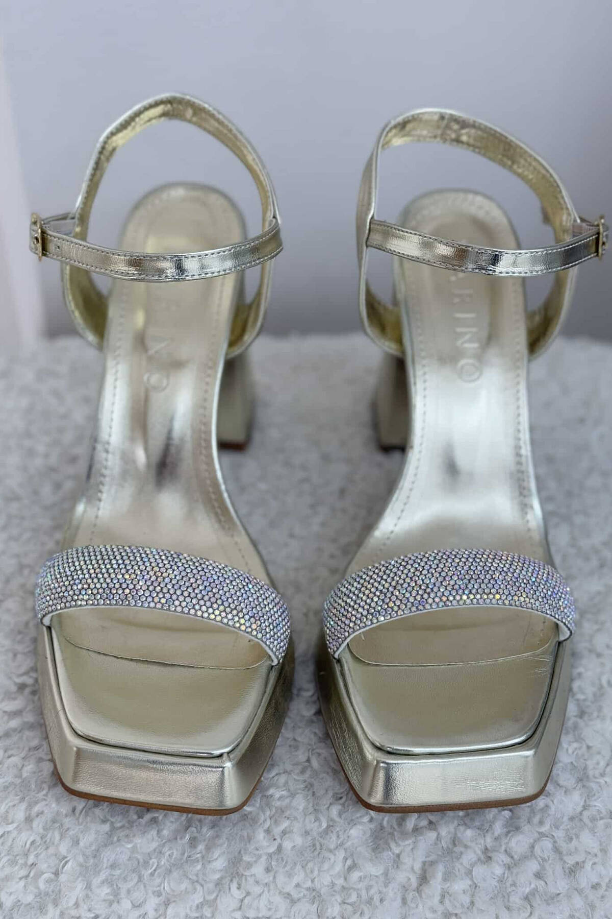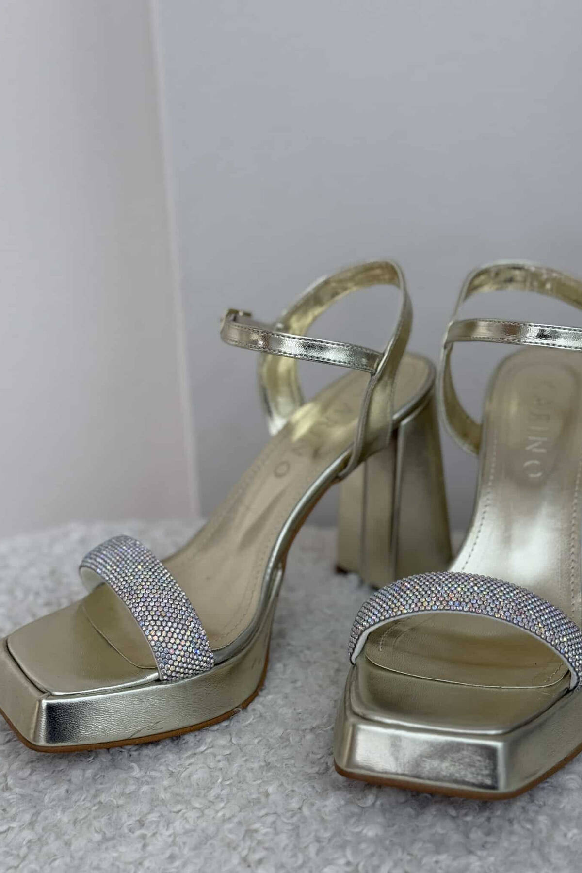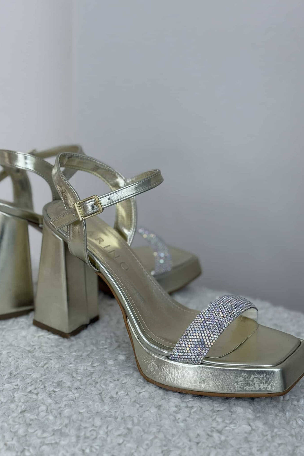 SANDALE ME TAKË ME DETAJIN E DIAMANTËVE PËR FEMRA NË NGJYRËN GOLD