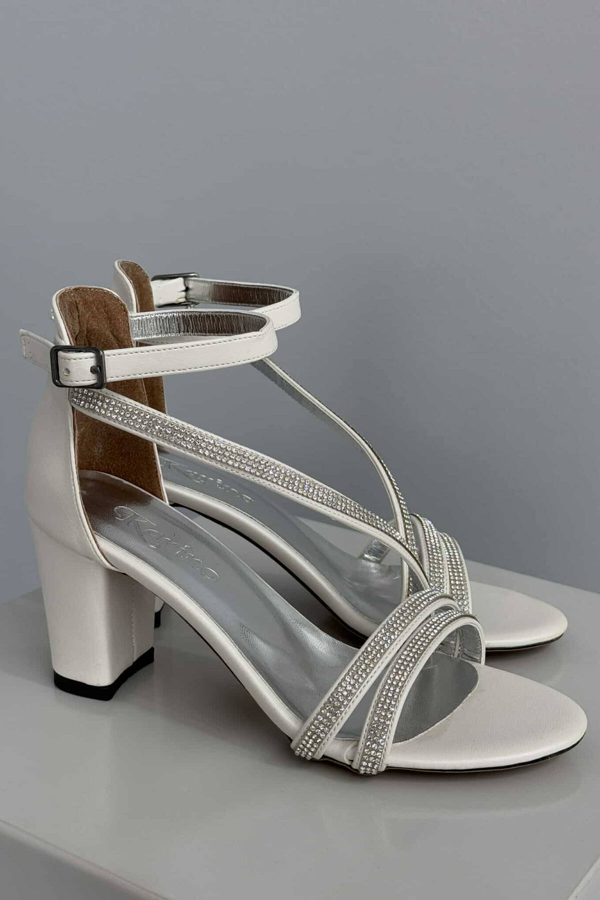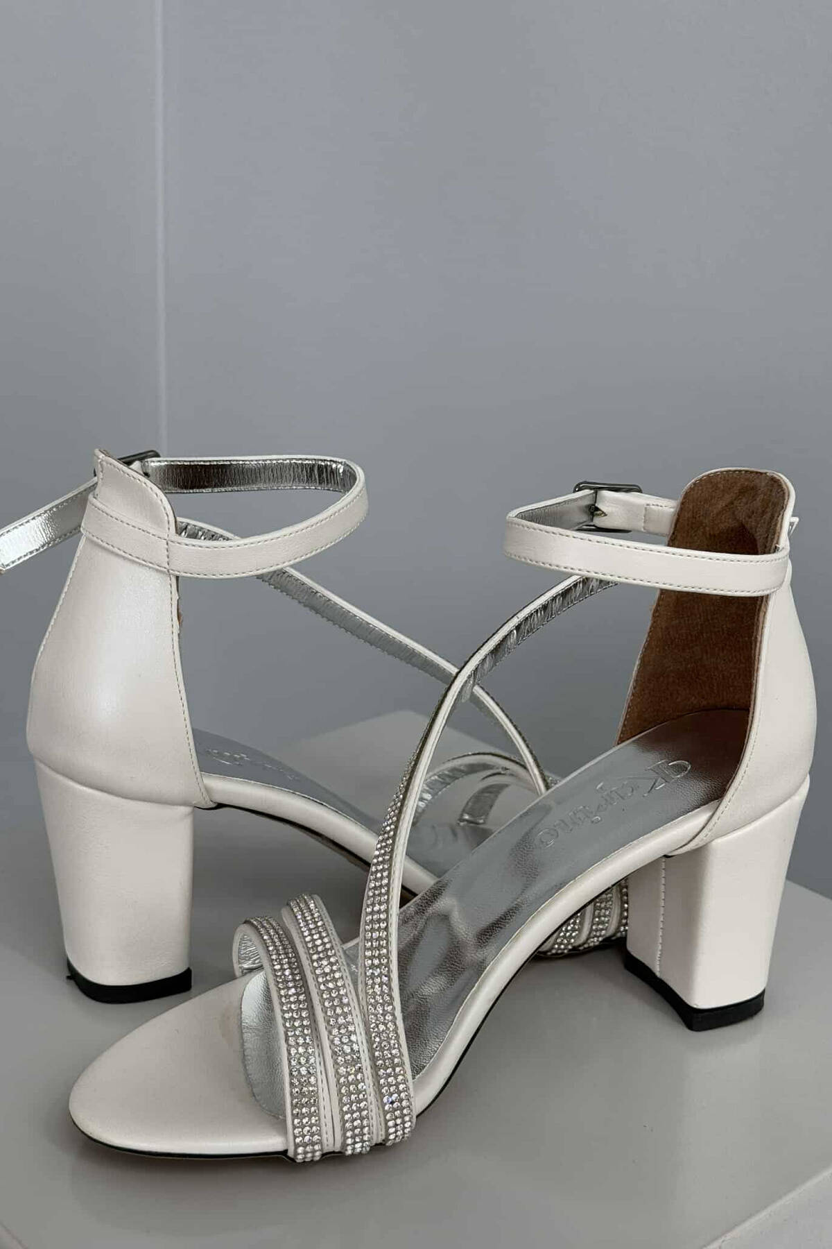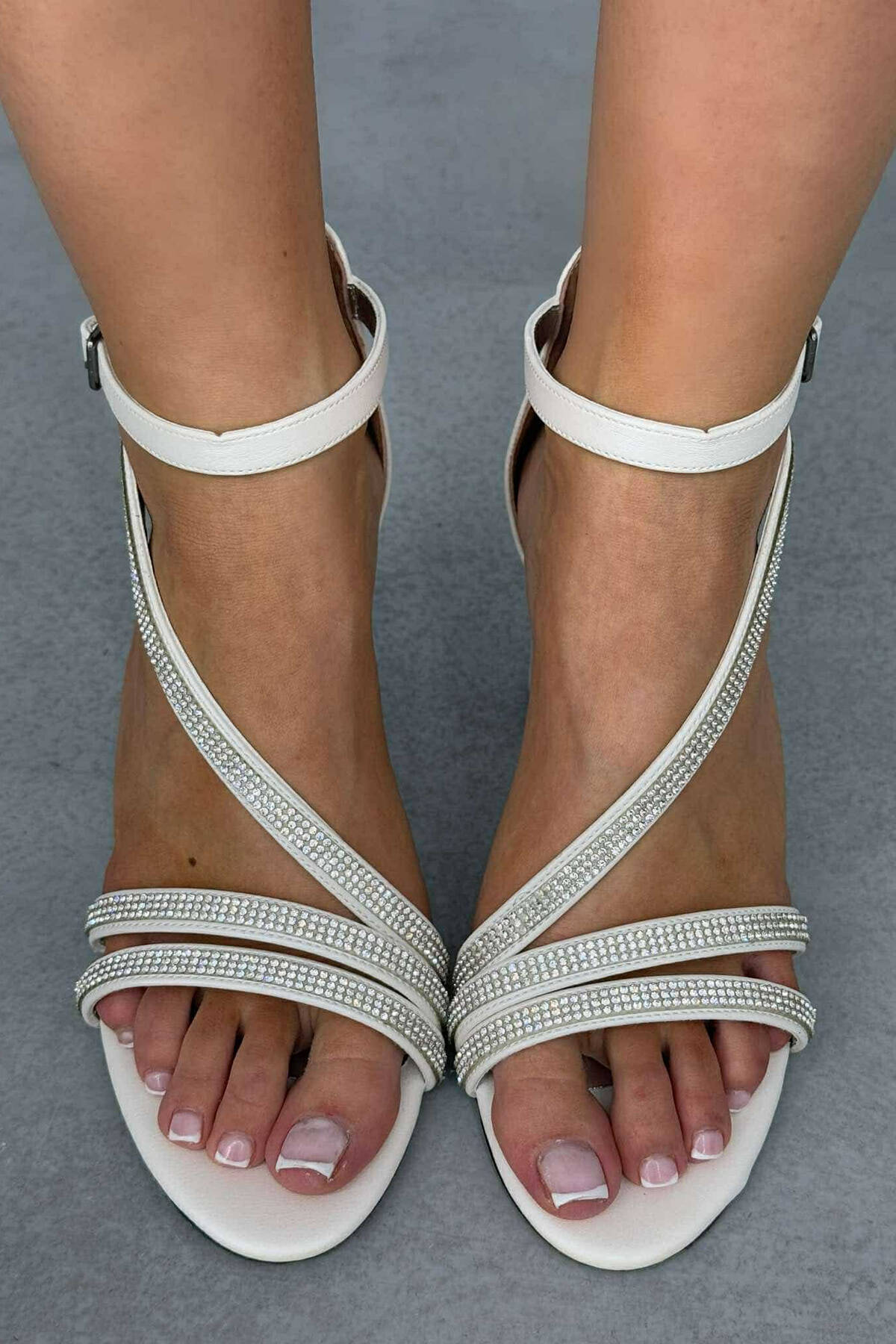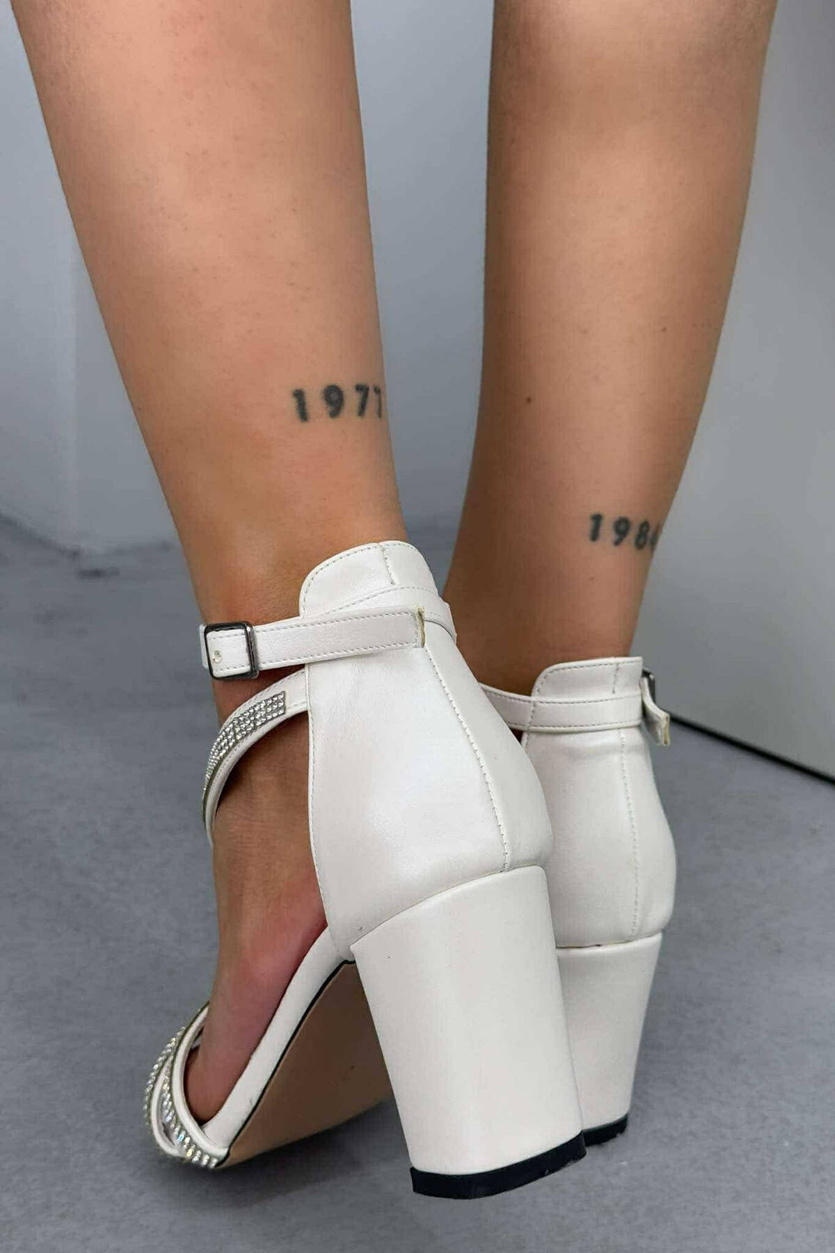 SANDALE ME TAKË ME DETAJIN E DIAMANTËVE PËR FEMRA NË NGJYRË TË BARDHË