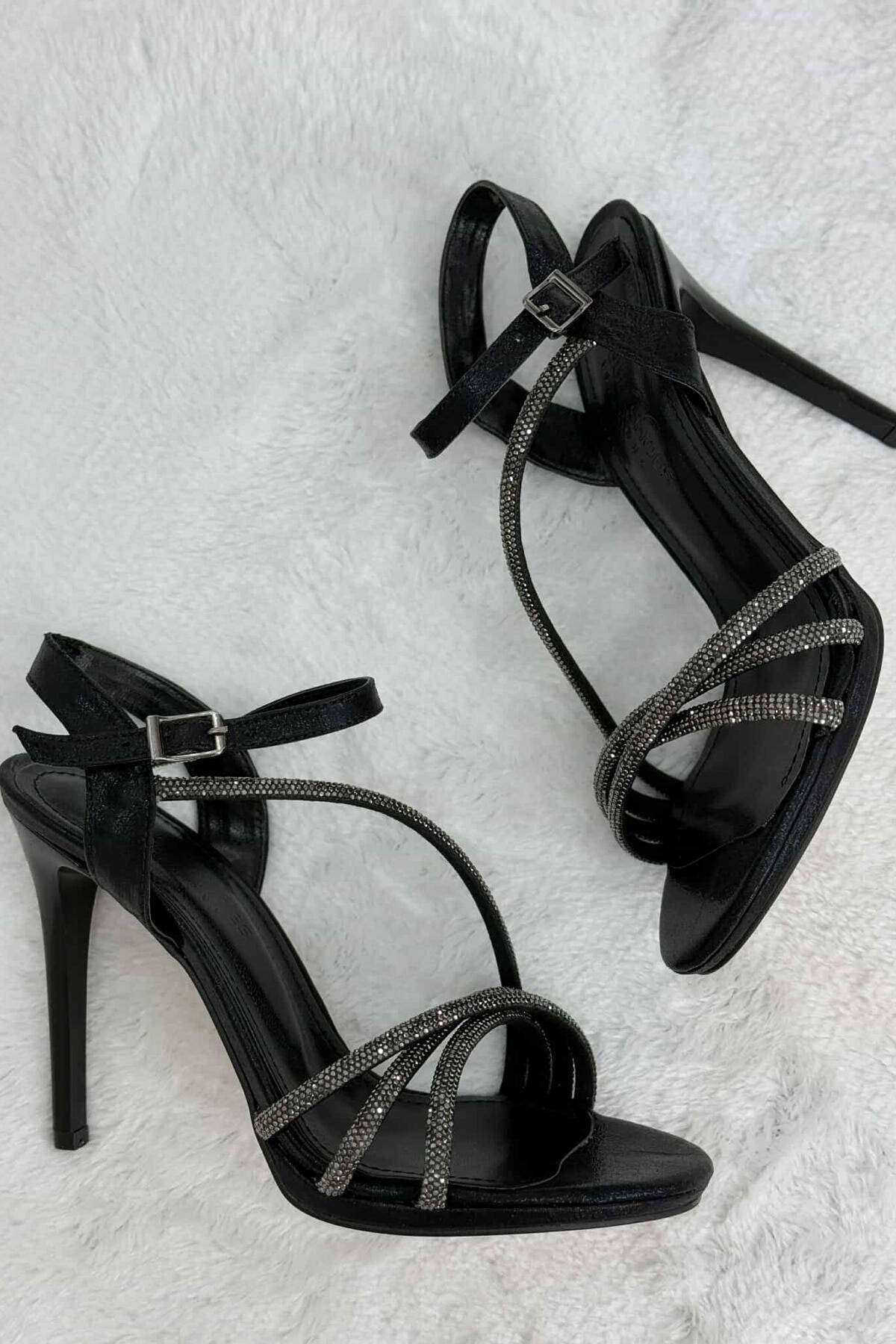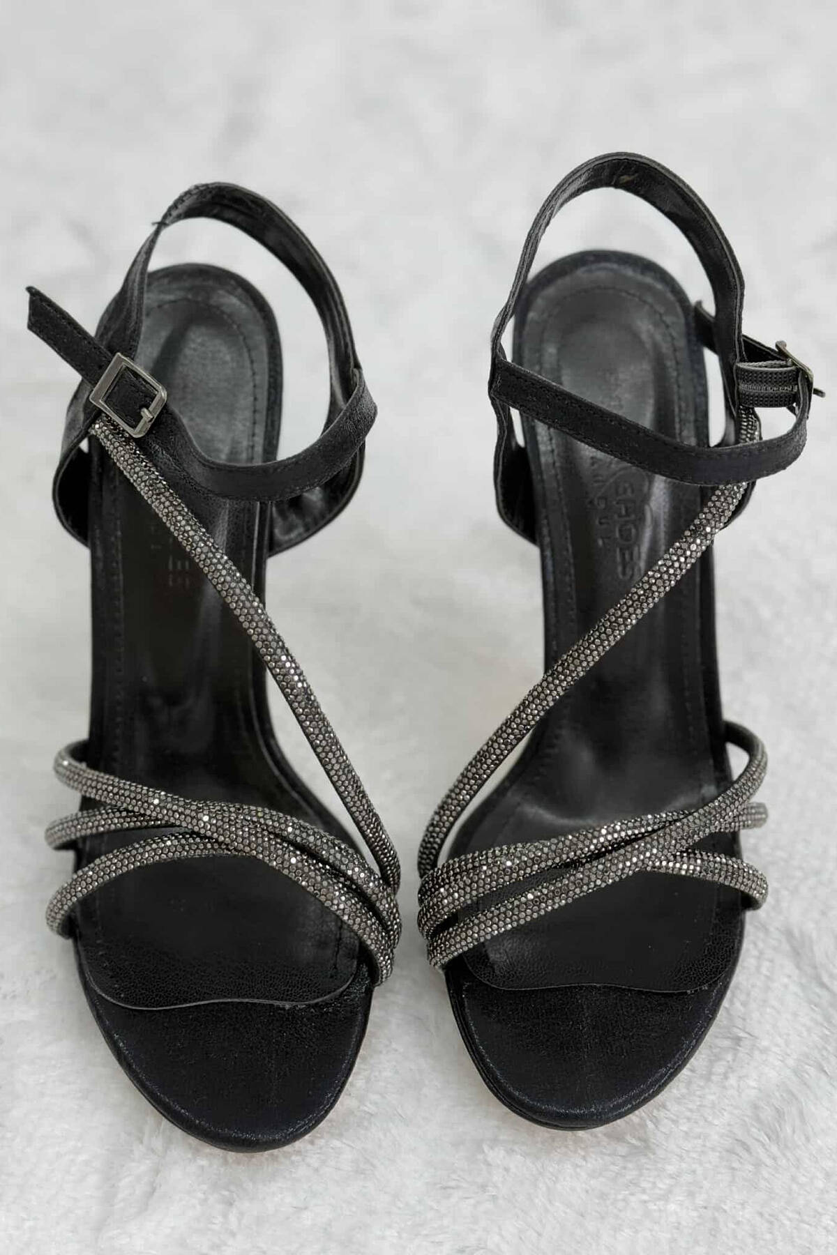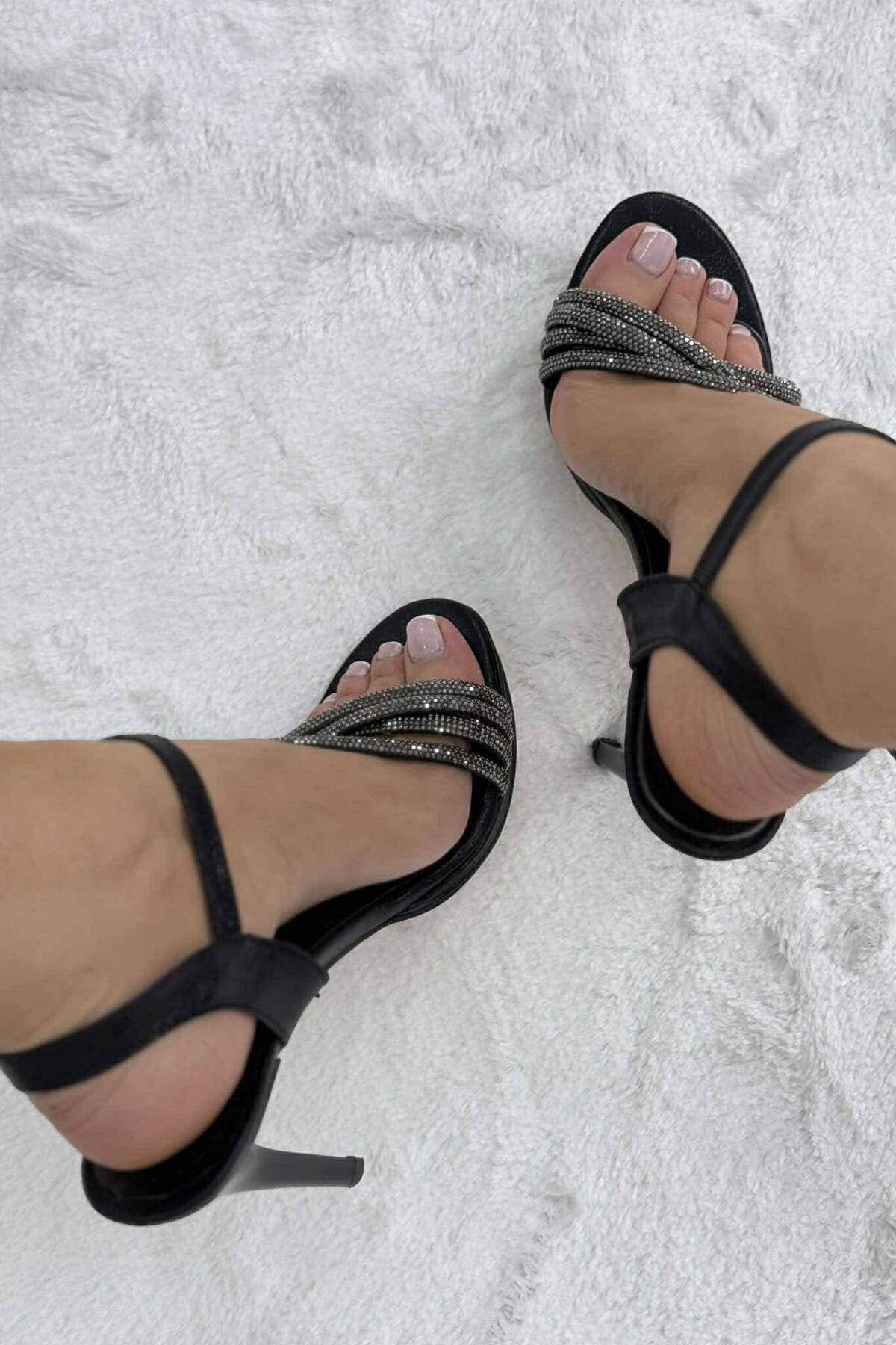 SANDALE ME TAKË TË HOLLË PËR FEMRA NË NGJYRË TË ZEZË