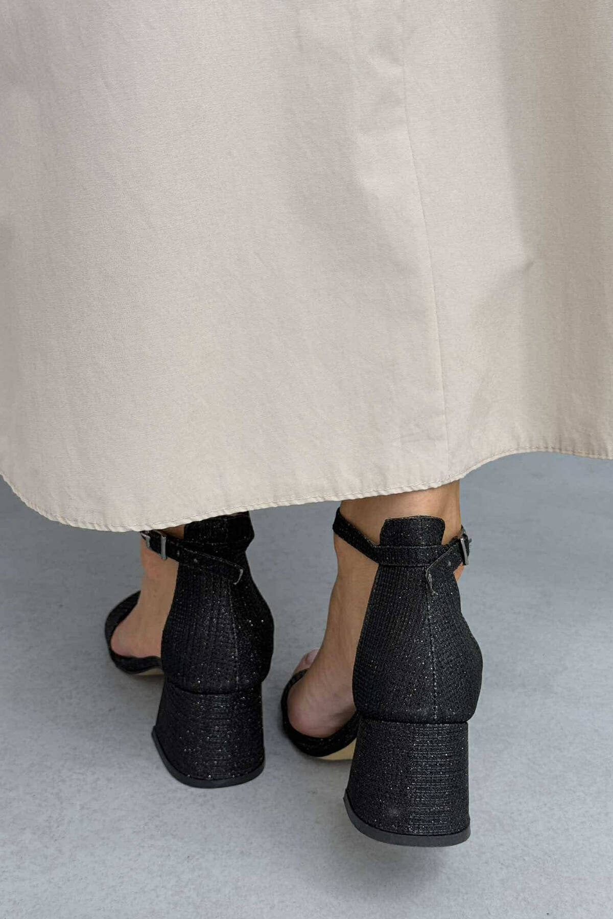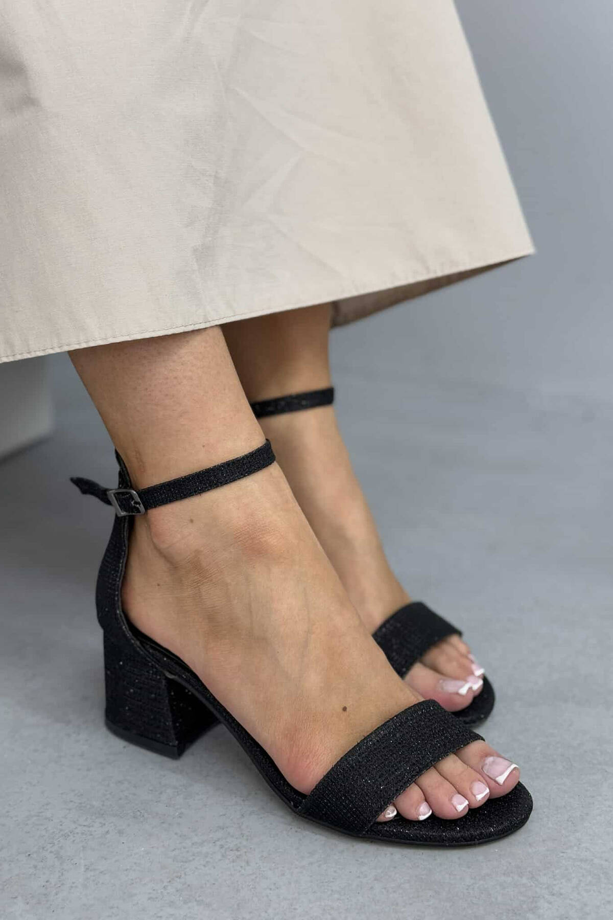 SANDALE NJË NGJYRËSHE ME GJYSMË TAKË NË NGJYRË E ZEZË ME SHKËLQIM