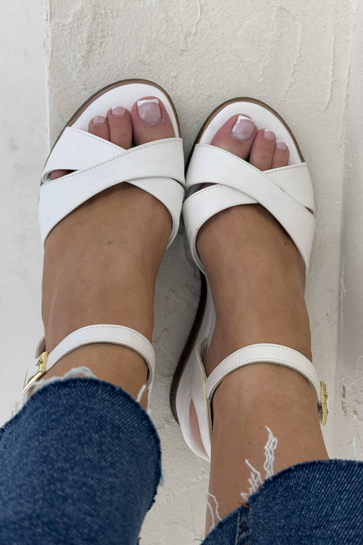 SANDALE NJË NGJYRËSHE TË THJESHTA PËR FEMRA NË NGJYRËN E BARDHË