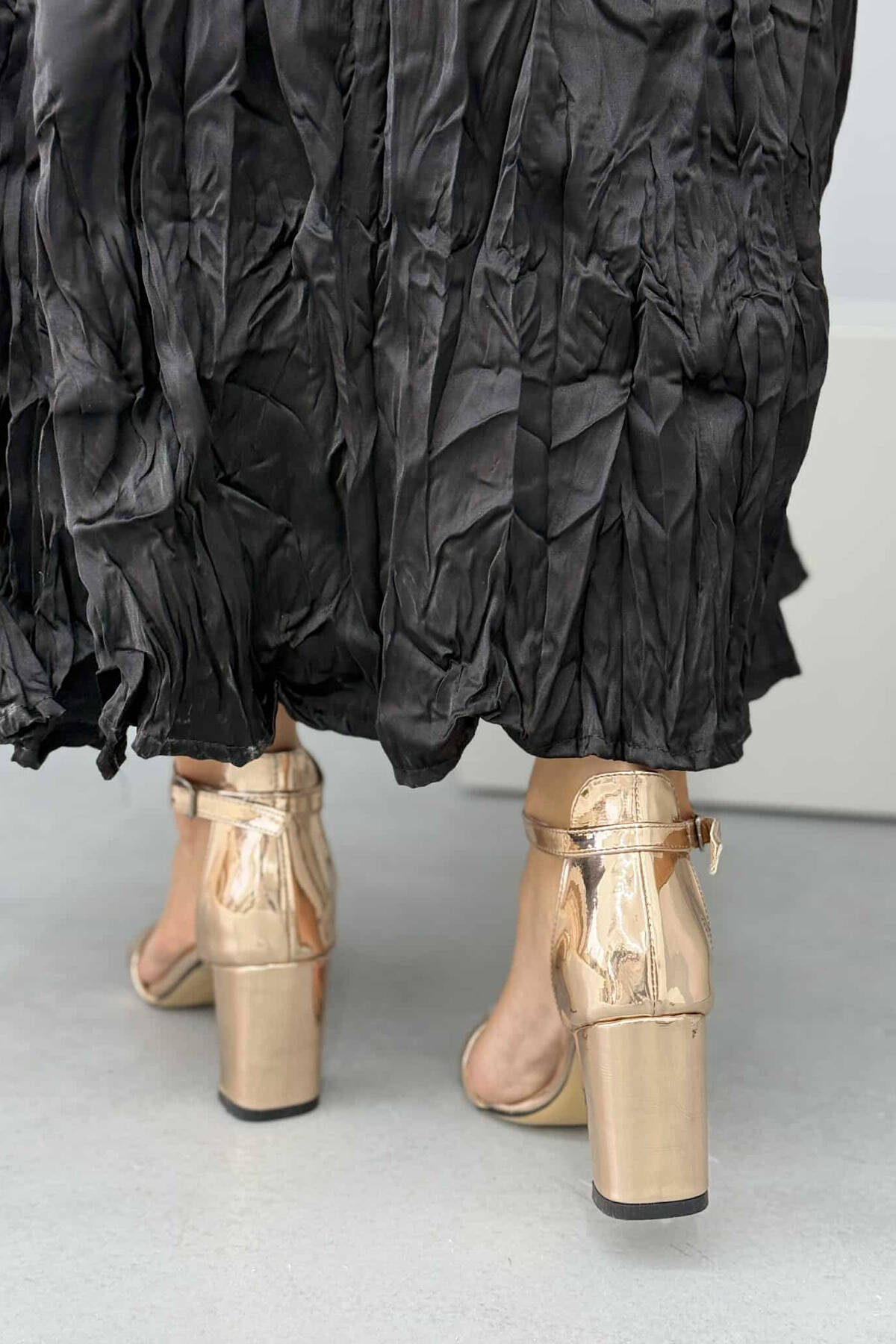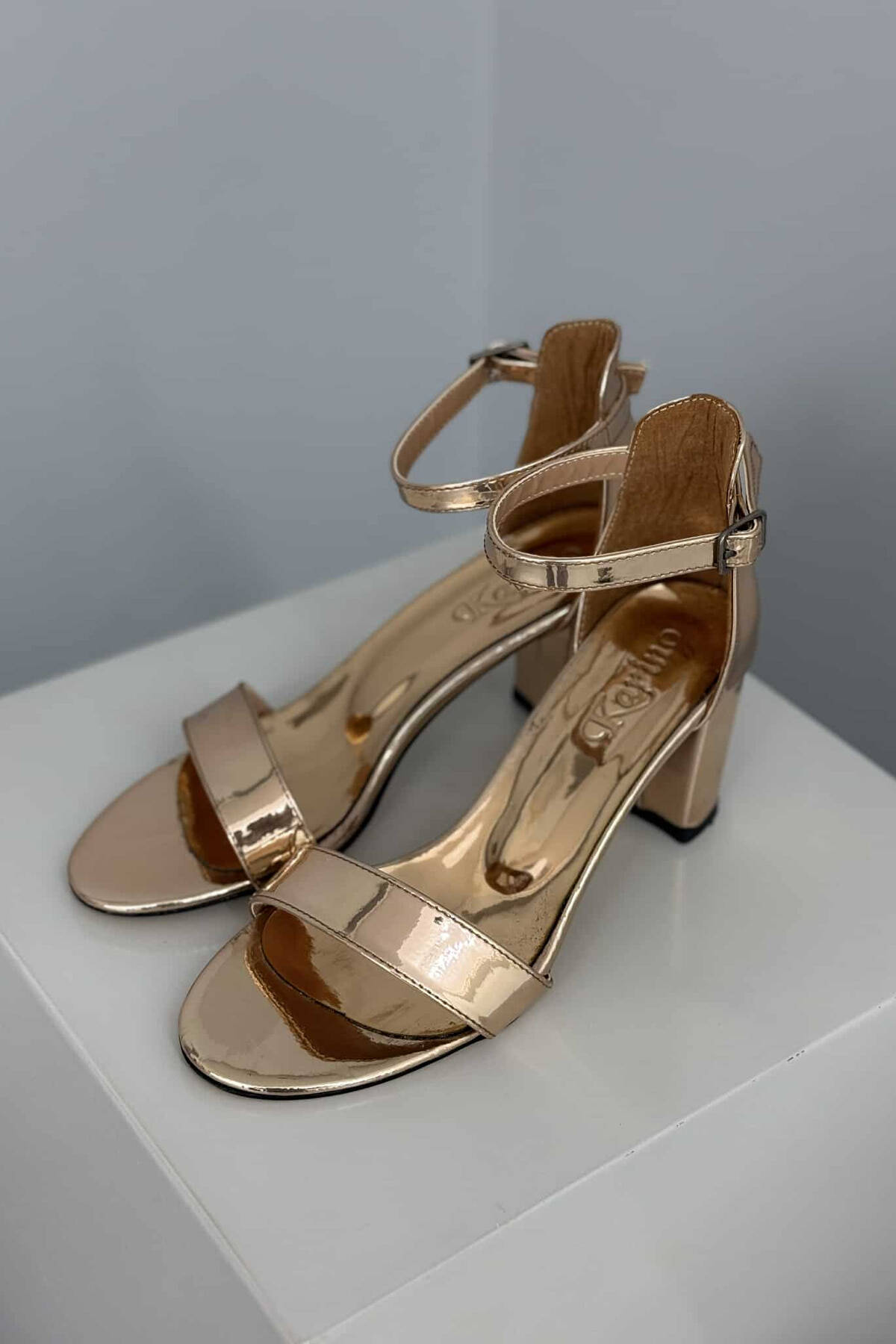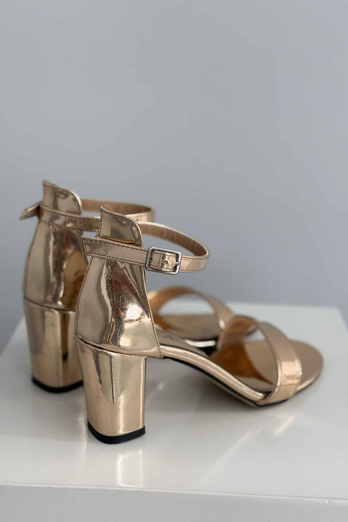 SANDALE TË SHNDRITSHME ME TAKË PËR FEMRA NË NGJYRË GOLD