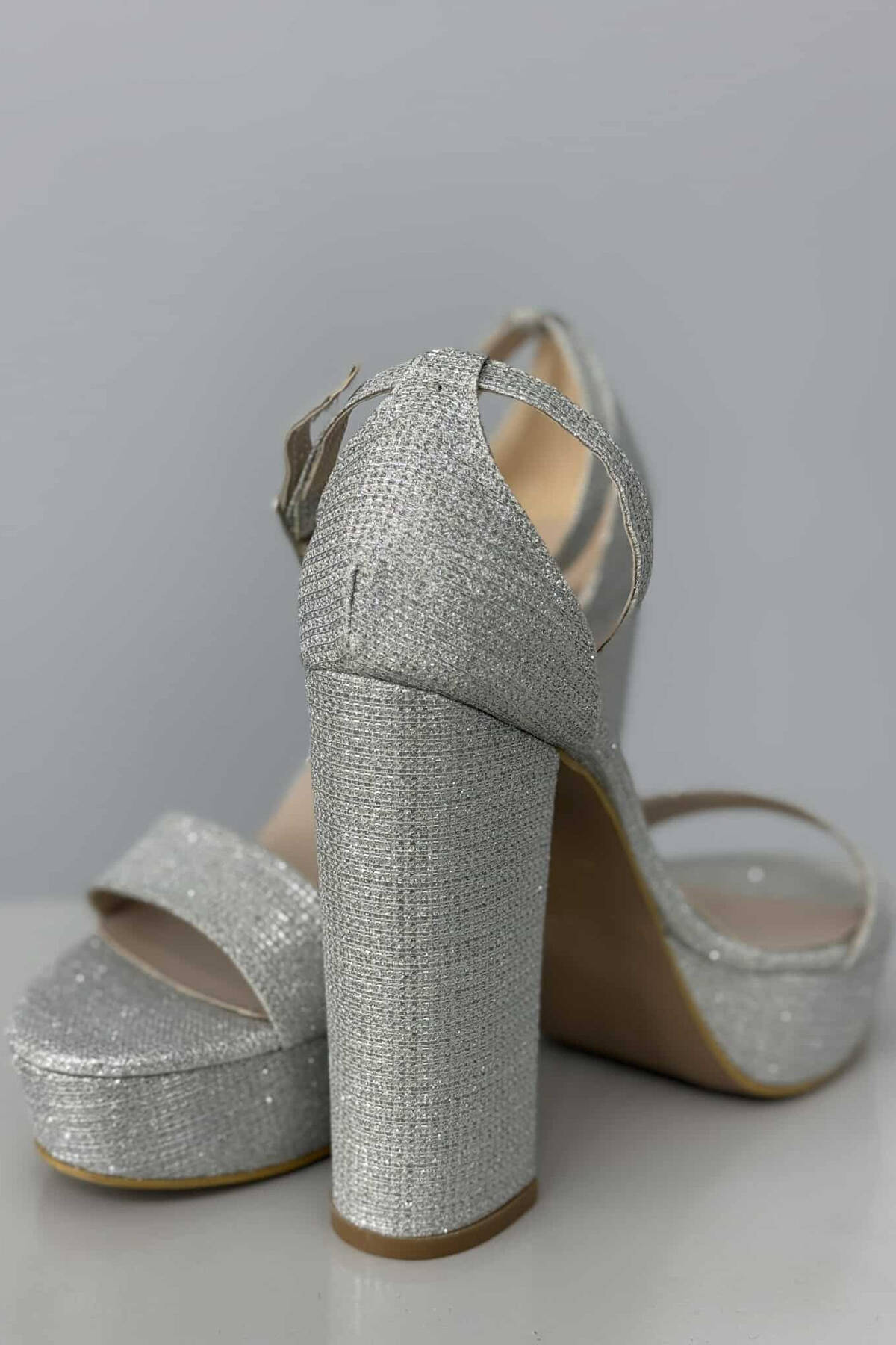 SANDALE TË SHNDRITSHME ME TAKË PËR FEMRA NË NGJYRË GRI E ZBARDHUR