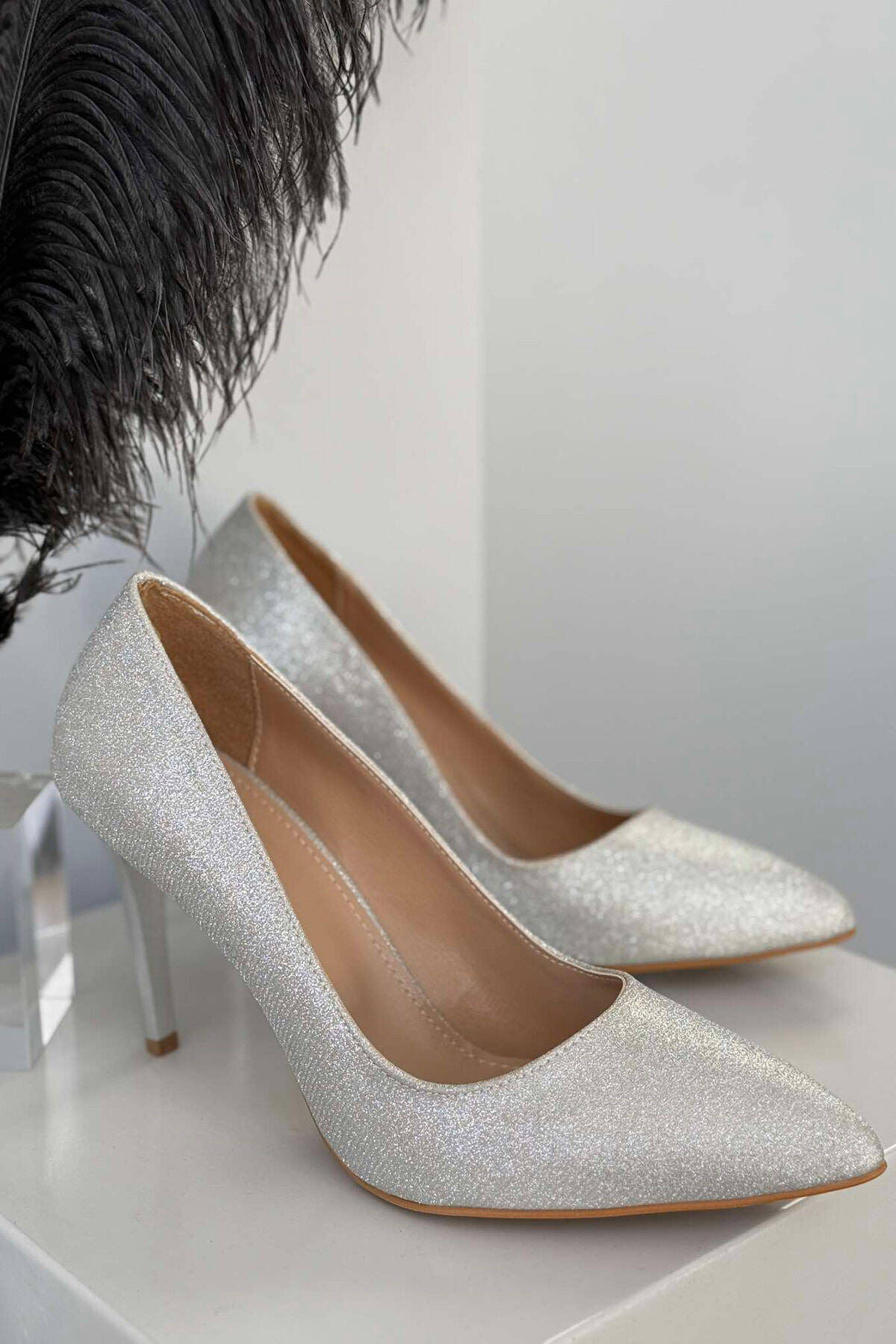 SANDALE TË SHNDRITSHME ME TAKË PËR FEMRA NË NGJYRË GRI
