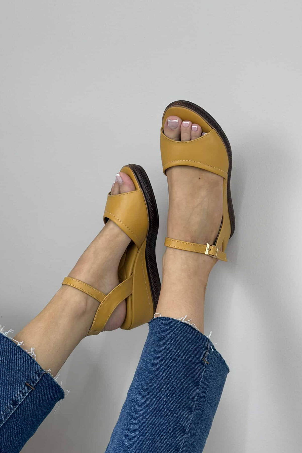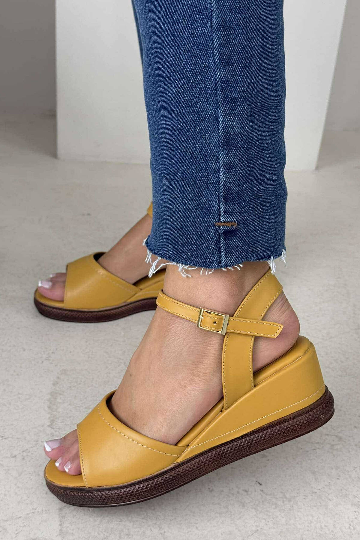 SANDALE TË THJESHTA NJË NGJYRËSHE PËR FEMRA NË NGJYRËN MUSTARDË