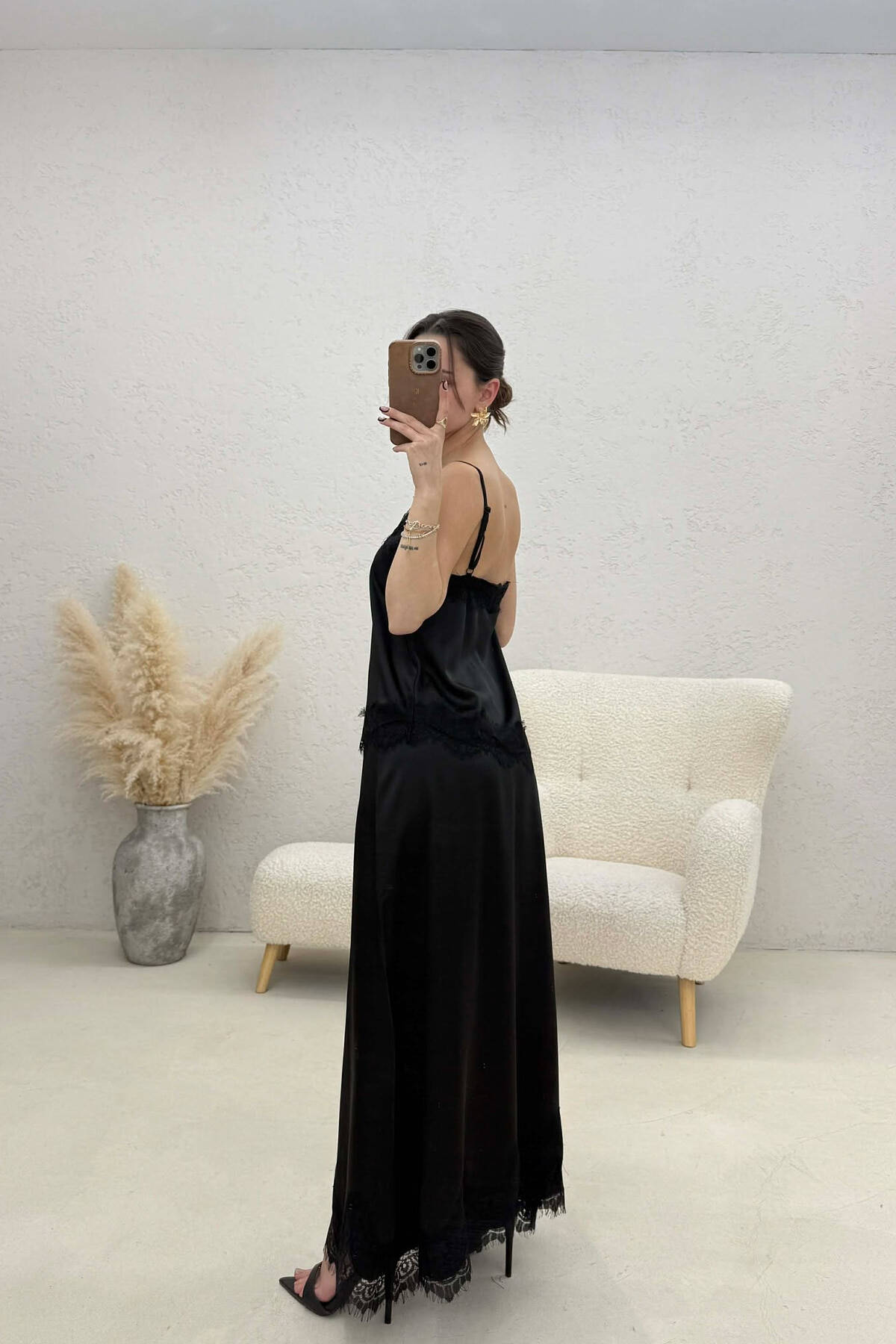 SATIN TANK TOP + SKIRT WOMAN SET BROWN/KAFE