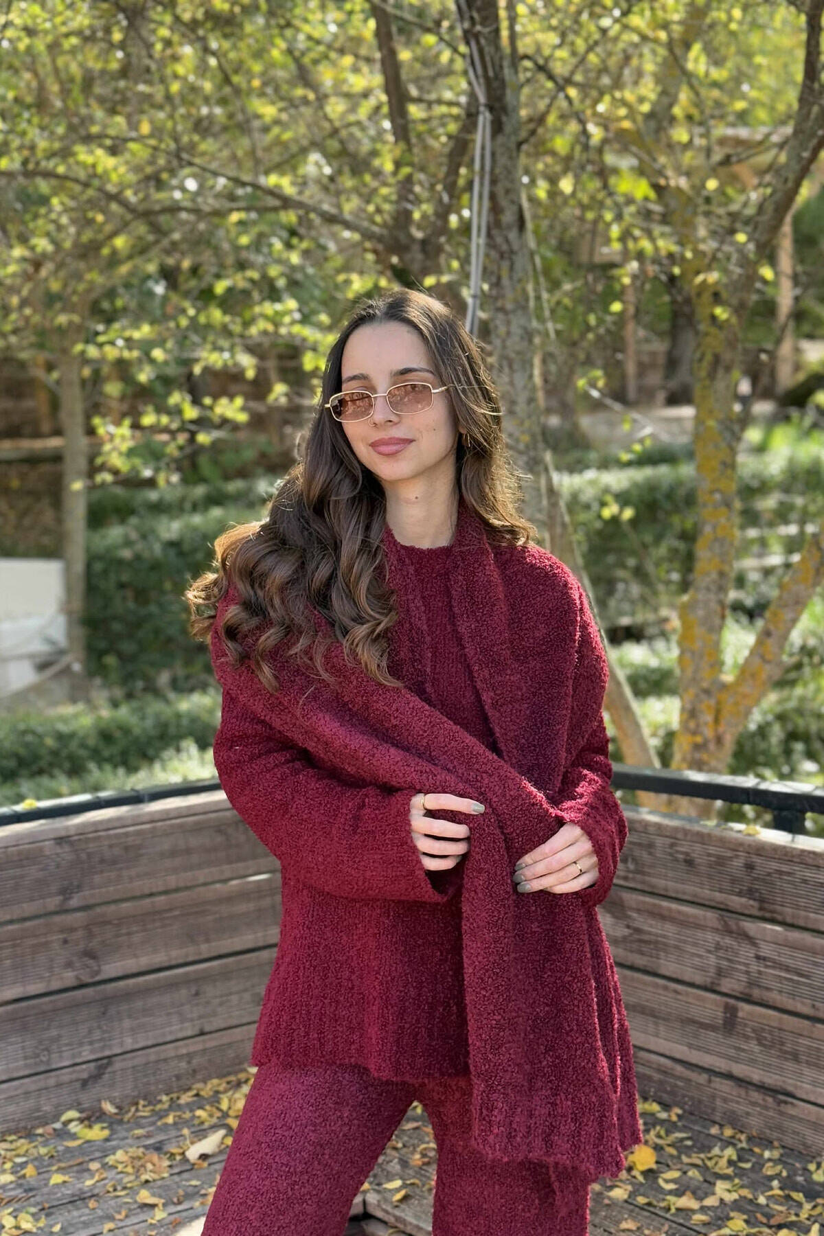 SET TRE PJESËSH I THURRUR SHALL+TRIKO+PANTALLONA PËR FEMRA NË NGJYRË VISHNJË