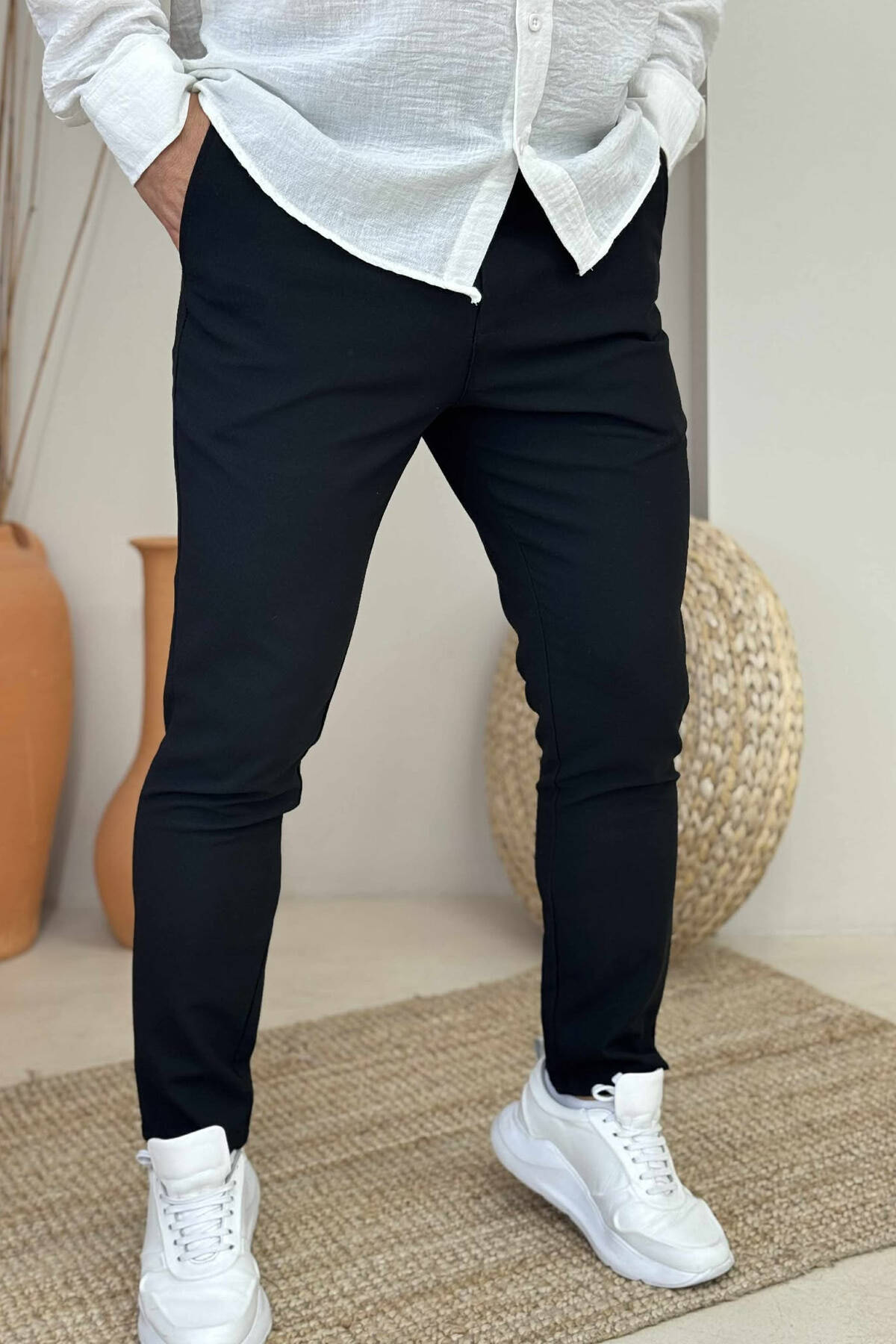 SEMI ELASTIC WAIST ONE COLOR MEN PANTS BLACK/ E ZEZE
